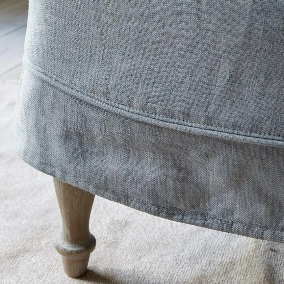 Dieser Sessel lädt mit seiner großzügigen Sitzfläche und dem festen, bequemen Polster zum Verweilen ein – ob beim Lesen, Träumen oder einfach nur zum Durchatmen. Der naturfarbene Bezug aus reinem Leinen bringt mit seiner grob gewebten Struktur eine warme, ursprüngliche Atmosphäre in Ihr Zuhause. Die locker fallende Husse sorgt nicht nur für lässigen Charme, sondern lässt sich im Handumdrehen abnehmen und waschen – perfekt für den Alltag. Die sanft geschwungenen Armlehnen und die konischen Beine aus Eichenholz setzen einen zurückhaltenden, aber stilprägenden Akzent. Ein Lieblingsplatz mit Charakter und Komfort.