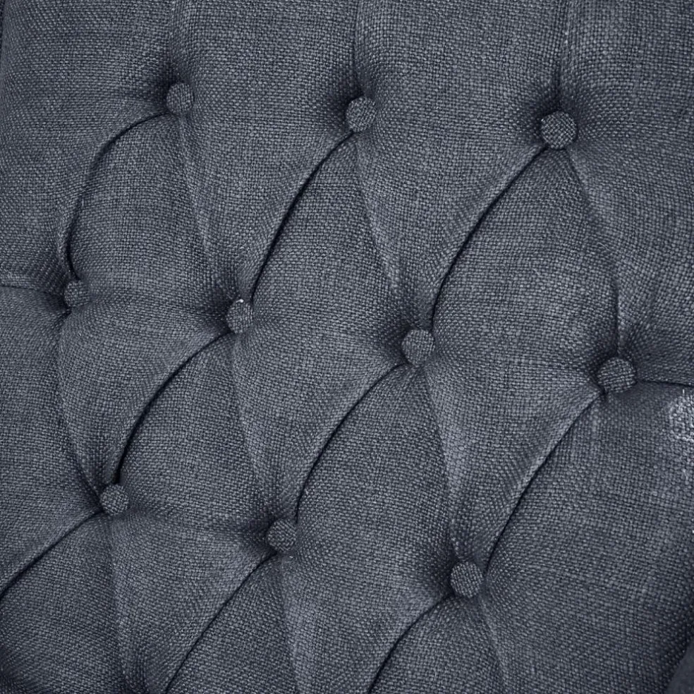 Die besondere Ausstrahlung dieses Sessels liegt in seiner Kombination aus prägnanter Formensprache und textiler Raffinesse. Der strukturierte Stoffbezug in tiefem Blau bringt eine feine Körnung mit, welche die Chesterfield-Knöpfung besonders wirkungsvoll in Szene setzt. Die Rückenlehne verläuft geschwungen und endet in einem gerollten Abschluss, der an historische Möbelklassiker erinnert. Arm- und Sitzflächen sind weich gepolstert, die Rückenrolle unterstützt komfortables Zurücklehnen. Zwei gedrechselte Vorderbeine mit Rollen verleihen dem Sessel eine subtile Mobilität – und eine charmante Note von Salonstil. Ein Solitär, der Behaglichkeit und Eleganz mit souveräner Haltung verbindet.