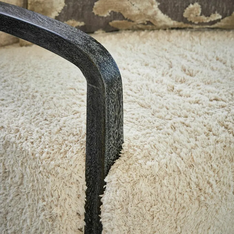 Dieser Sessel ist eine Hommage an gemütliche Stunden – charmant, weich und formschön. Der voluminöse Bezug in Teddyfell-Optik erinnert an flauschige Winterdecken und verleiht dem Sessel eine einladende Wärme. Seine Form ist bewusst kompakt gehalten: rundlich, fast skulptural, mit einer betonten Rückenlehne, die Geborgenheit ausstrahlt. Die Armlehnen aus massivem Mangoholz setzen nicht nur einen optischen Akzent, sondern bringen durch ihre dunkle Lasur und sichtbare Holzstruktur auch eine rauchige Tiefe ins Spiel. So entsteht ein spannender Materialmix – soft trifft charaktervoll – der sowohl in moderne als auch in rustikale Wohnkonzepte passt.