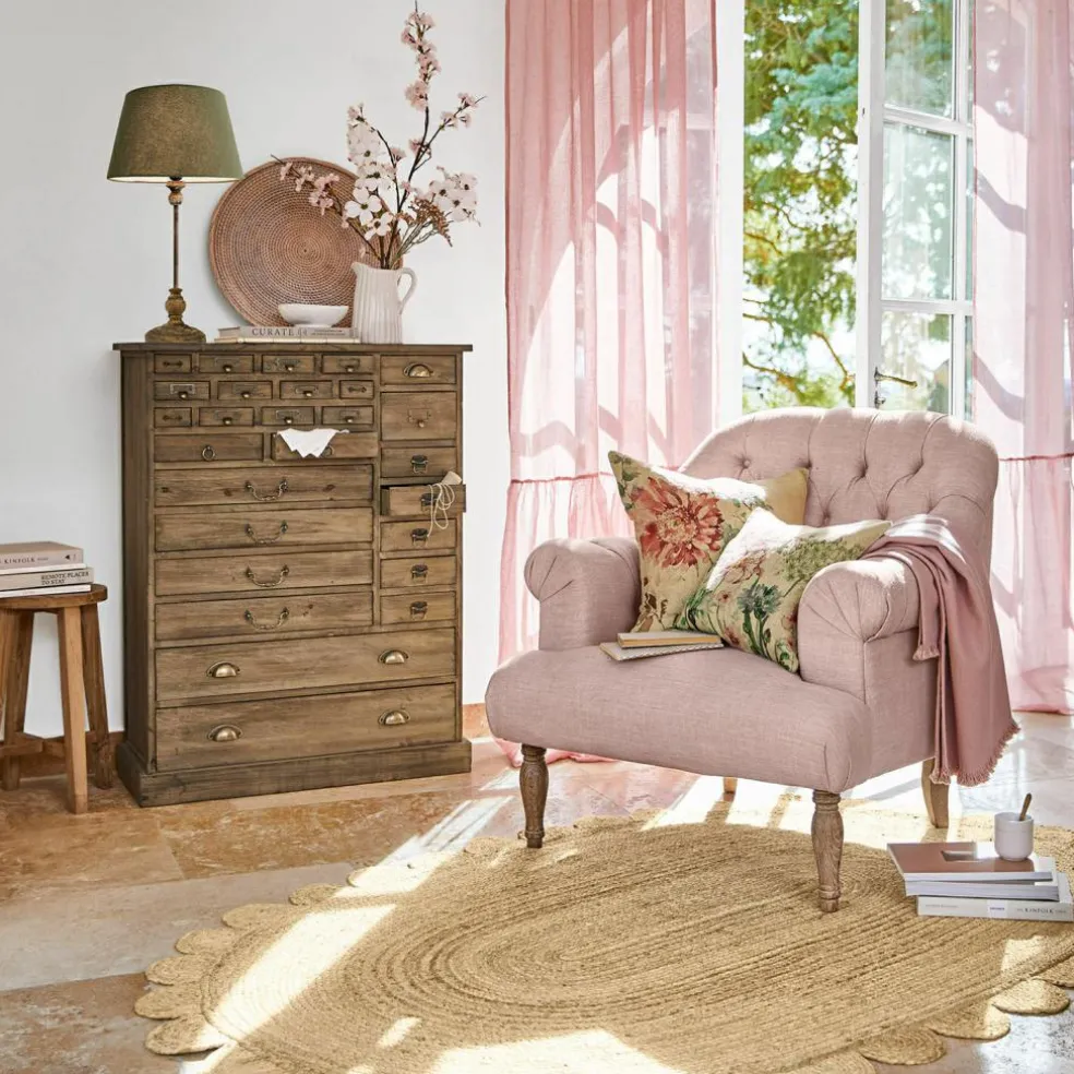 Dieser wunderschöne und sehr komfortable Sessel könnte zu Ihrem neuen Lieblingsplatz werden. Er zeigt eine edle Chesterfield-Steppung und hat einen Bezug aus robustem Material, das eine dezente Struktur zeigt, dank des Leinenanteils. Die stabilen Füße bestehen aus Birkenholz, der Rahmen aus Kiefernholz. Das klassische Design mit komfortablen Armlehnen passt hervorragend zum Landhaus-Stil und verspricht viele entspannte Stunden – bei einem guten Buch, interessanten Gesprächen oder einem tollen Film können Sie es sich hierin so richtig bequem machen und Ihre wertvolle Freizeit genießen. Im Wohnzimmer, als Sitzgelegenheit im Schlafzimmer oder auch für die Pause im stilvollen Home Office ist dieses elegante und sehr zeitlose Accessoire die perfekte Wahl. An diesem wunderbaren Sessel in harmonischer Farbgebung werden Sie viele Jahre lang Freude haben.