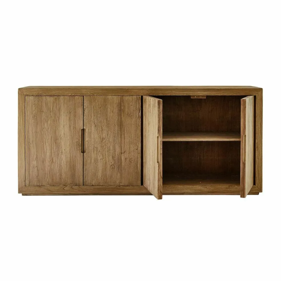 Klar in der Form, kraftvoll in der Wirkung – diese Kommode begeistert mit einem rustikalen Look, der auf Authentizität setzt. Gefertigt aus wiederaufbereitetem Ulmenholz, lebt sie von der individuellen Maserung, feinen Rissen und natürlichen Unebenheiten, die ihr einen ganz eigenen Charakter verleihen. Die strukturreiche Oberfläche erinnert an verwittertes Holz in alten Werkstätten oder ländlichen Scheunen – bewusst unperfekt und gerade deshalb so charmant. Die vier Türen fügen sich nahtlos ins reduzierte Design ein und machen die Kommode zum funktionalen Begleiter mit stilvollem Understatement. Ob im Esszimmer, Flur oder Wohnzimmer – dieses Stück wirkt geerdet, ehrlich und souverän.