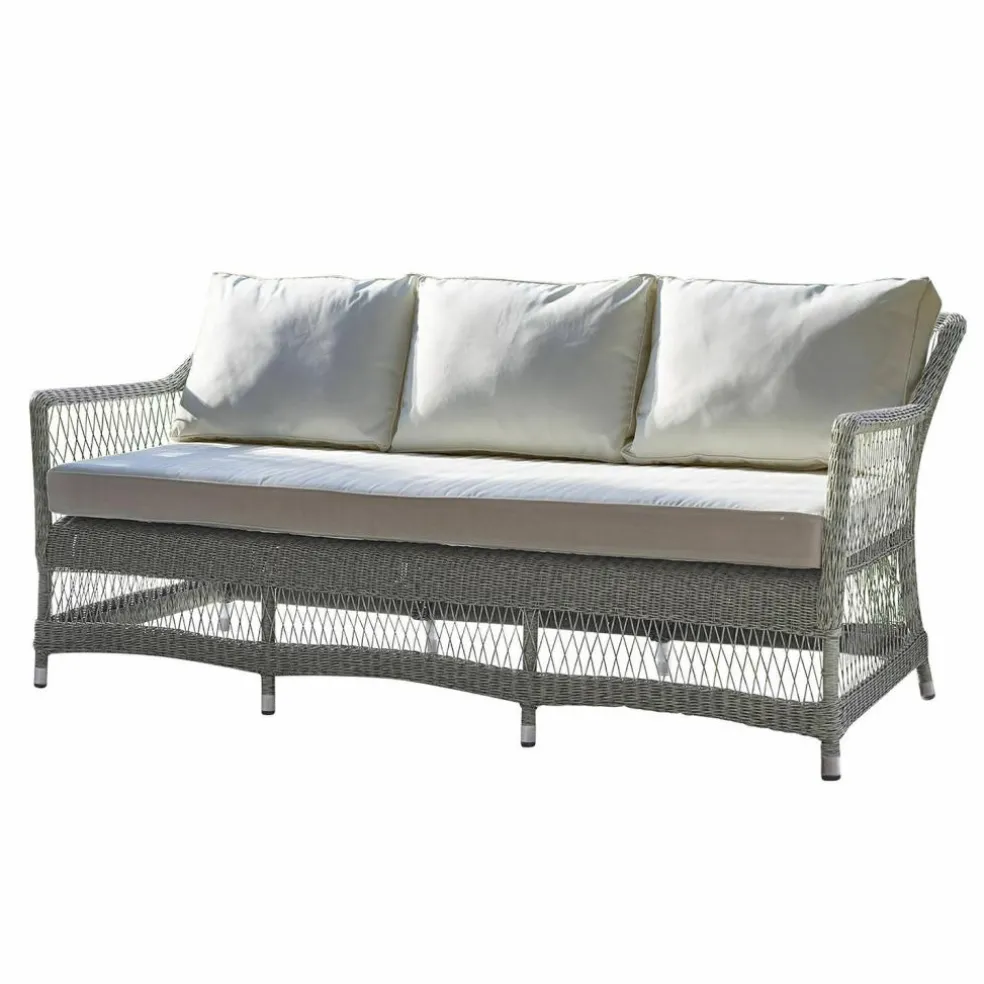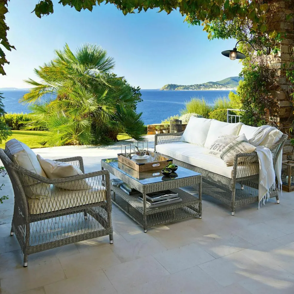 Wunderschön, absolut wetterfest und äußerst langlebig. Sie verleiht Garten und Terrasse elegantes Flair und bietet ihrer Familie und Gästen echten Sitzkomfort. Die Gestelle bestehen aus Aluminium und einem Geflecht aus hochwertigen Synthetikfasern. Das Geflecht hat eine besonders schöne Farbgebung: Eher grau mit einem dezenten Grünschimmer, zieht sie so alle Blicke auf sich! Es sieht echtem Rattan zum Verwechseln ähnlich, ist aber deutlich widerstandsfähiger und fasert nicht. Die Polster sind ebenso langlebig, leicht zu reinigen und zudem extrem schnelltrocknend. Die massive Glasplatte, die auf dem Tisch thront, unterstreicht ebenfalls den hohen Qualitätsanspruch.