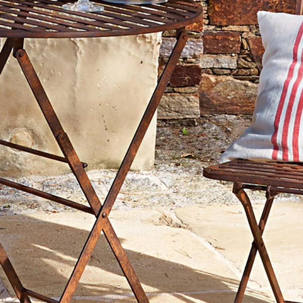 Die schmiedeeiserne Sitzgruppe für Ihre romantische Pause. Zwei Stühle und ein Tisch gruppieren sich zu einer Insel der Erholung. Die fein patinierten Oberflächen mit braunem Antik-Finish bieten ein nostalgisches Ambiente und sorgen dafür, dass Sie diese Sitzgruppe sowohl drinnen als auch draußen verwenden können. Die Stühle und der Tisch können dank ihrer Klappfunktion mit wenigen Handgriffen schnell an den gewünschten Ort gebracht werden. Im Flur bieten Sie Platz, um bequem die Handtasche abzustellen und die Schuhe zu wechseln. Im Wohnraum sind sie ein schönes Grüppchen um mit Freunden einen Kaffee zu genießen und auf der Terrasse kann der Abend genüsslich mit einem Glas Wein ausklingen. Da ist es praktisch, dass die Stühle und der Tisch so transportabel sind. Wenn Sie die Sitzgruppe doch einmal beiseitestellen wollen, macht sich die praktische Klappfunktion beim Verstauen positiv bemerkbar. Denn die flach anliegenden Stühle und der flach geklappte Tisch nehmen nur minimal Platz in Anspruch und sind sofort greifbar, wenn Sie sie benötigen. Wer weiß? Bei der nächsten Gartenfeier könnte ein weiterer Abstelltisch sinnvoll sein, oder kommt überraschend Besuch? Dann sind die Stühle und der Tisch in Sekunden am Platz und bieten, neben ihrem praktischen Nutzen, außerdem eine Extraportion nostalgisches Flair