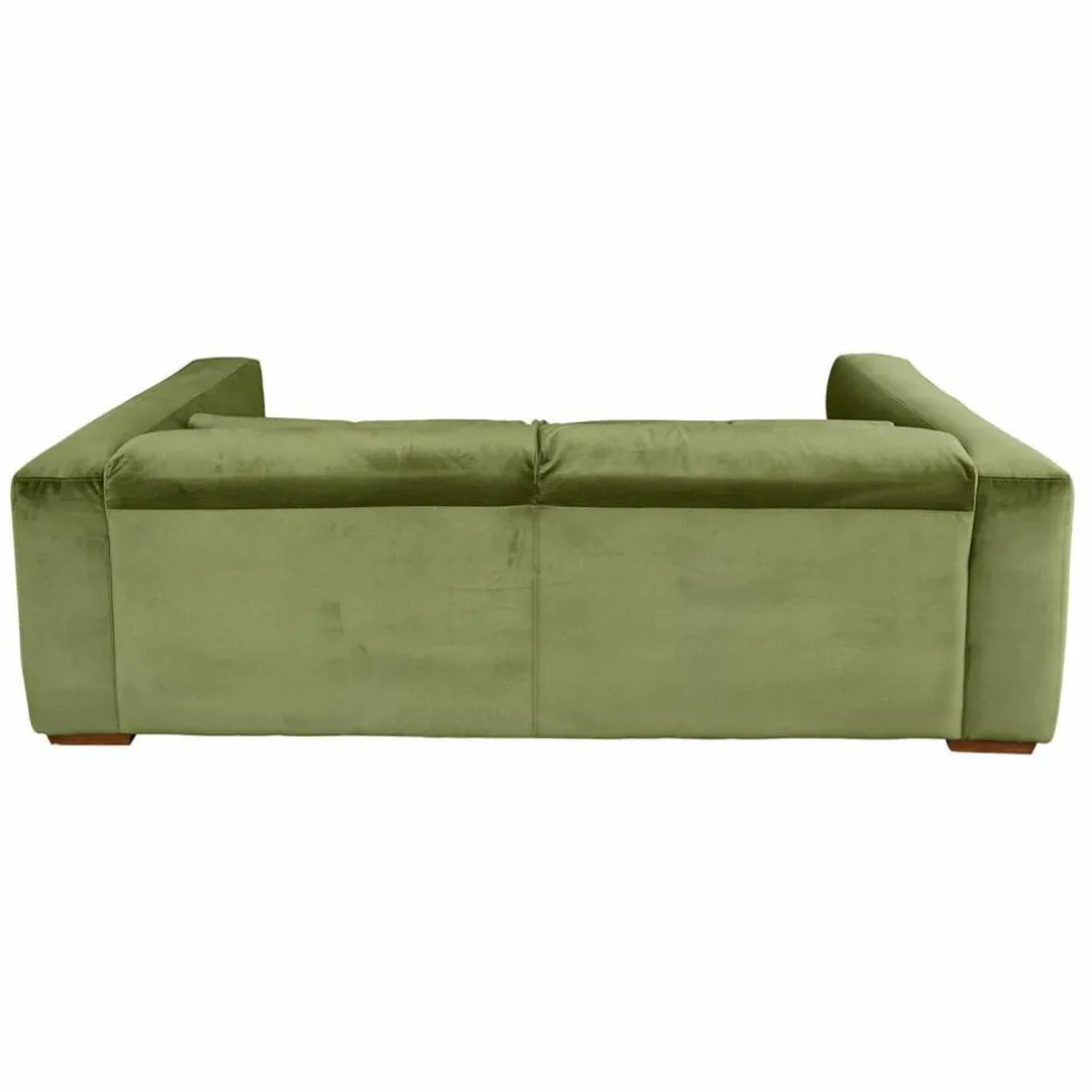 Die Farbe Grün steht für Natur und Leben, als gedämpftes Olivgrün strahlt sie außerdem Ruhe aus und hilft, Körper und Seele ins Gleichgewicht zu bringen. Vor dem Hintergrund dieses Wissens fragen wir Sie: Gibt es eine bessere Farbe für ein Sofa? Ein Sofa, auf das Sie sich nach einem stressigen Tag fallen lassen können und vollendete Entspannung finden. Doch nicht nur der warme Oliv-Ton wird seine wohltuende Wirkung entfalten, sondern auch der weiche Bezug aus Polyestersamt, der zum wohligen Hineinkuscheln einlädt. Mit diesem Sofa zieht eine Entspannungs-Oase ein, die Sie nie mehr missen möchten. Mit der stattlichen Sitzbreite ist das Sofa groß genug, um sich auch mal lang auszustrecken oder um drei Personen einen komfortablen Sitzplatz zu bieten. Die hochwertige Polsterung hält genau die richtige Balance zwischen weich und fest und macht zusammen mit den zwei länglichen Kuschelkissen und den dick gepolsterten Armlehnen den Entspannungsgenuss perfekt. Das sorgfältig und in bester Handwerksqualität gefertigte Gestell aus Kiefernholz bildet die stabile Basis für eine lange Lebensdauer. Tipp: Nehmen Sie die Farbe Grün auch bei den Accessoires wie Zierkissen, Vasen und Co auf – das macht die stimmige Ausstrahlung Ihres Wohnraums perfekt.