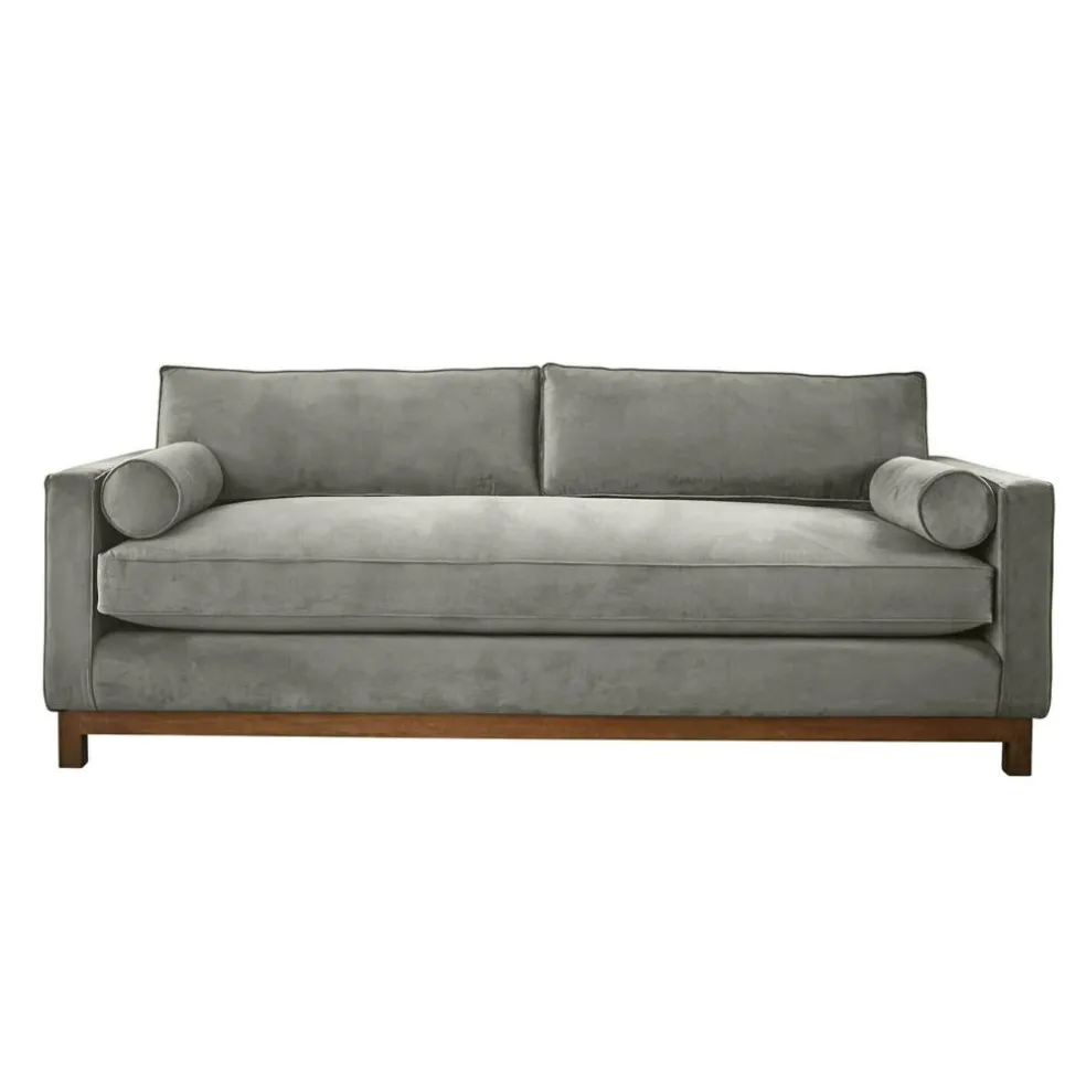 Dieses Sofa bringt Ruhe in den Raum – nicht durch Zurückhaltung, sondern durch seine entschlossene Formensprache. Geradlinige Armlehnen, ein tief angesetzter Korpus und die klar definierte Sitzfläche verleihen ihm eine architektonische Ausstrahlung. Zwei markante Rollenkissen setzen nicht nur einen formalen Akzent, sondern laden auch zum Anlehnen, Ablegen oder Entspannen ein. Der Bezug aus weichem Samt verleiht dem Design eine wohnliche Note – mit feiner Haptik und dezentem Glanz. Die abnehmbaren Kissenrollen-Bezüge runden das durchdachte Design funktional ab. Ein Möbelstück, das durch seine Klarheit überzeugt – und durch seine behutsame Raffinesse.