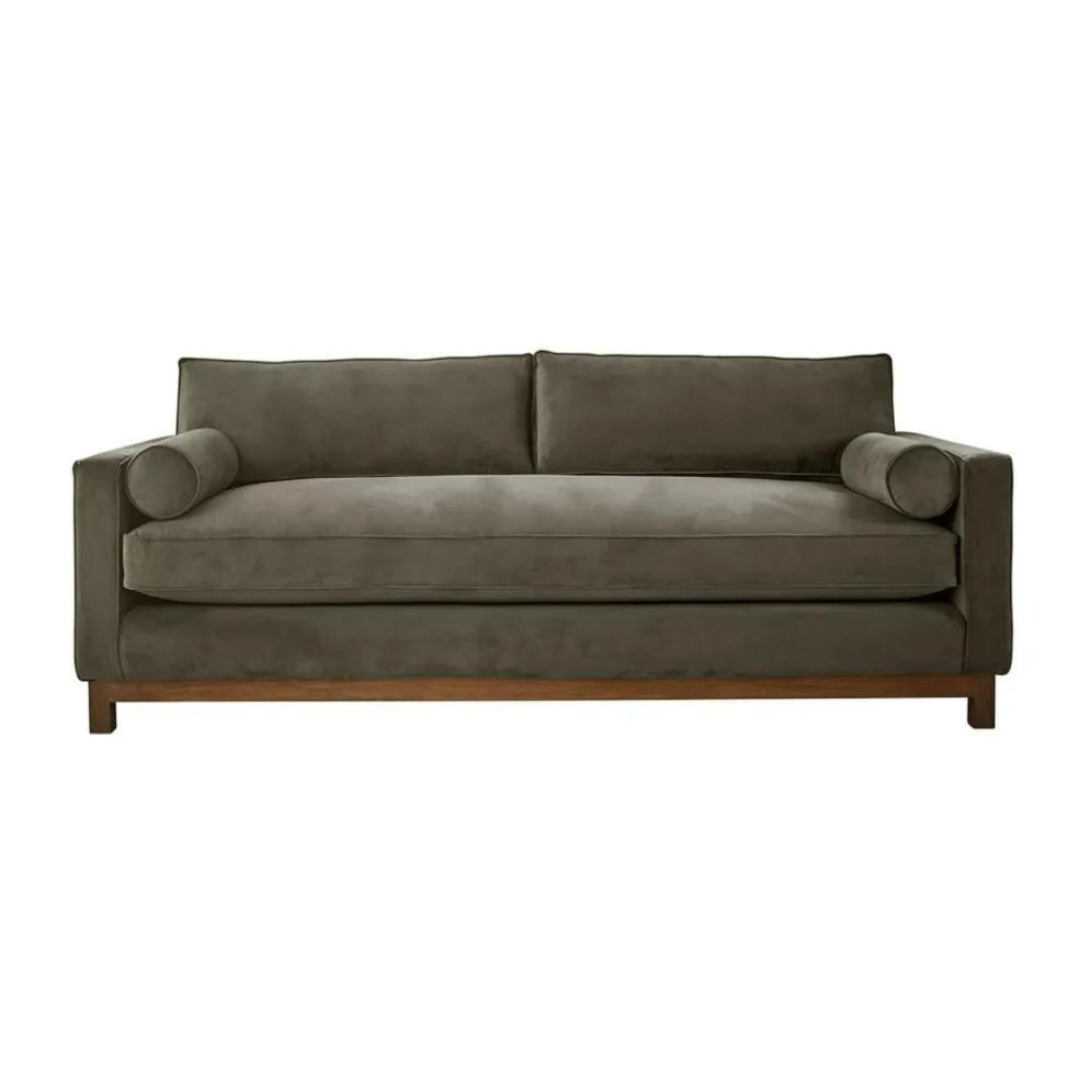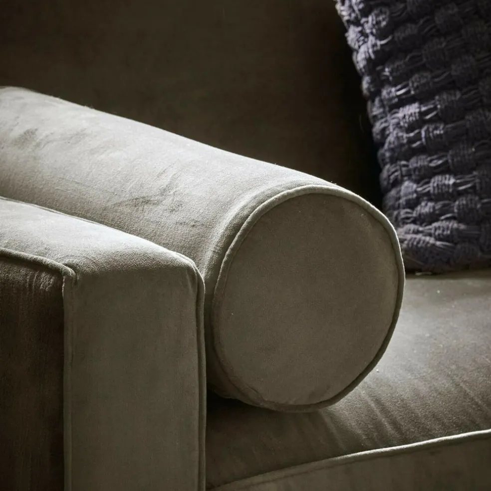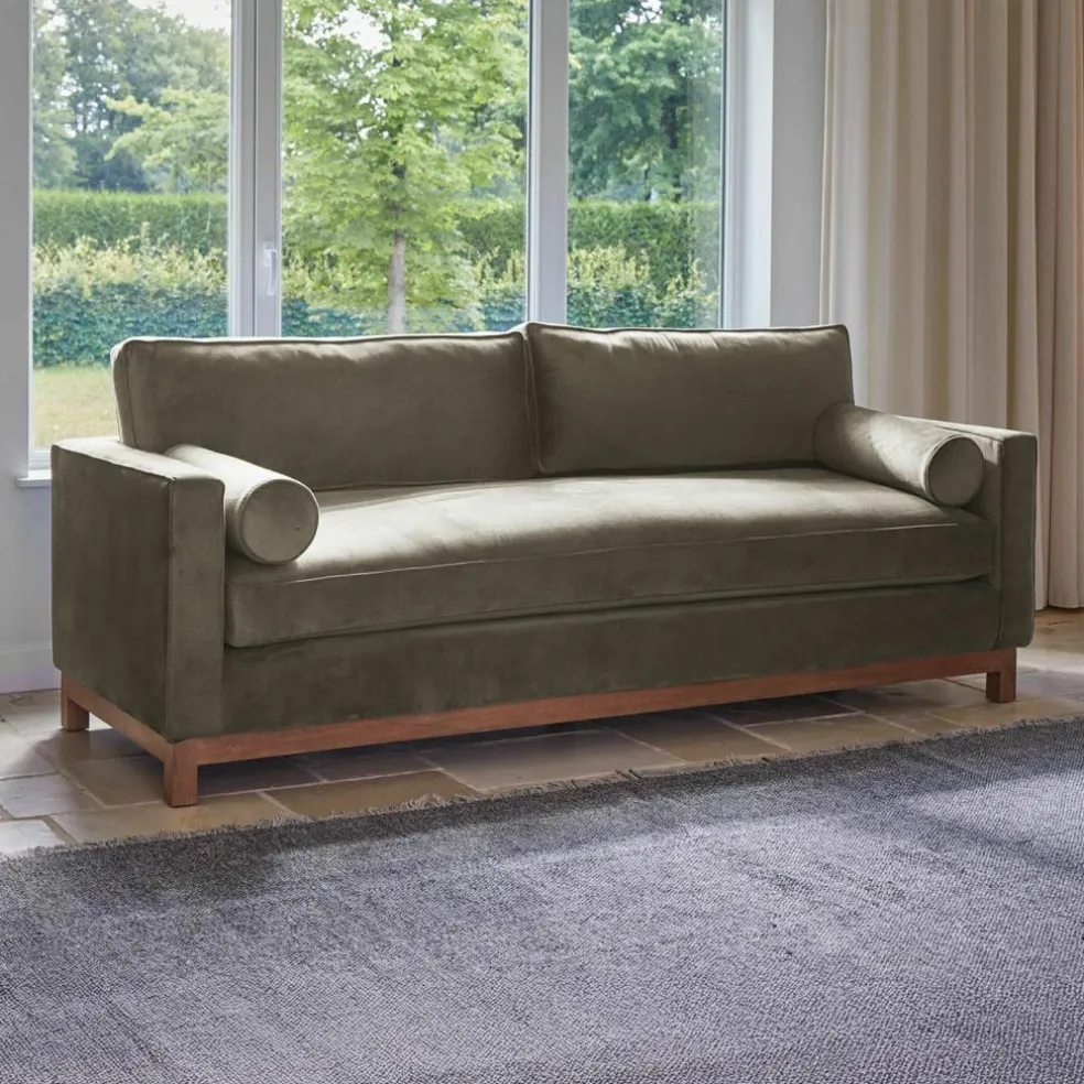 Dieses Sofa bringt Ruhe in den Raum – nicht durch Zurückhaltung, sondern durch seine entschlossene Formensprache. Geradlinige Armlehnen, ein tief angesetzter Korpus und die klar definierte Sitzfläche verleihen ihm eine architektonische Ausstrahlung. Zwei markante Rollenkissen setzen nicht nur einen formalen Akzent, sondern laden auch zum Anlehnen, Ablegen oder Entspannen ein. Der Bezug aus weichem Samt verleiht dem Design eine wohnliche Note – mit feiner Haptik und dezentem Glanz. Die abnehmbaren Kissenrollen-Bezüge runden das durchdachte Design funktional ab. Ein Möbelstück, das durch seine Klarheit überzeugt – und durch seine behutsame Raffinesse.