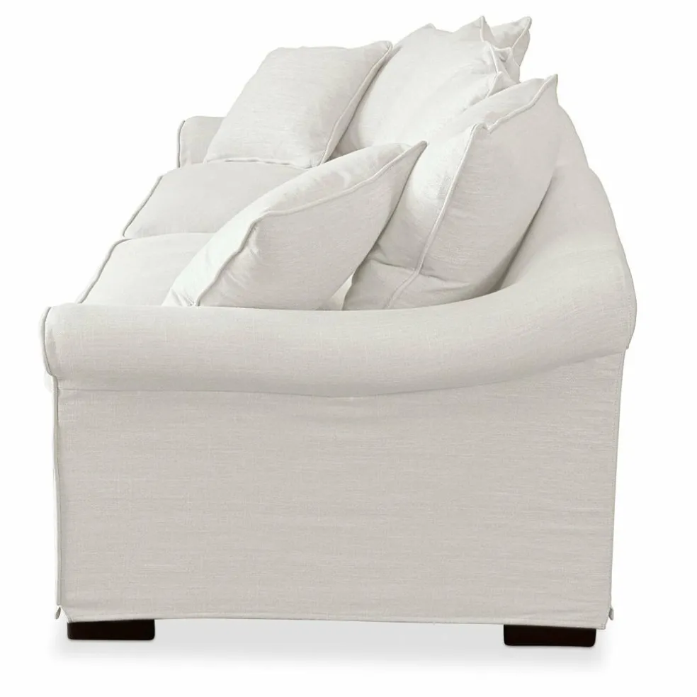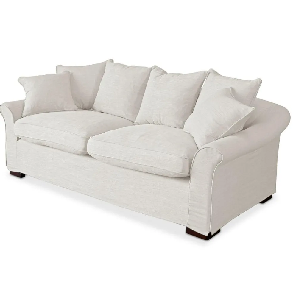 Was wäre das Leben ohne eine bequeme Basis? Nur halb so gemütlich! Wie gut, dass dieses cremefarbene Sofa nicht nur auf seine klassisch-schöne Optik setzt, sondern auch in Sachen Sitzkomfort bestens ausgestattet ist: Unter dem strapazierfähigen Bezug verbergen sich ein hochwertiges Holzgestell sowie eine formstabile Polsterung aus Schaumstoff und Entenfedern, die auch anspruchsvolle Lounge-Liebhaber glücklich machen. Zahlreiche Kissen geben Ihnen die nötige Rückendeckung, sodass Sie sich entspannt zurücklehnen und die Füße hochlegen können. Unser Tipp: Je nach Saison können Sie den dezenten Zweisitzer mit bunten oder gemusterten Kissen auffrischen.
