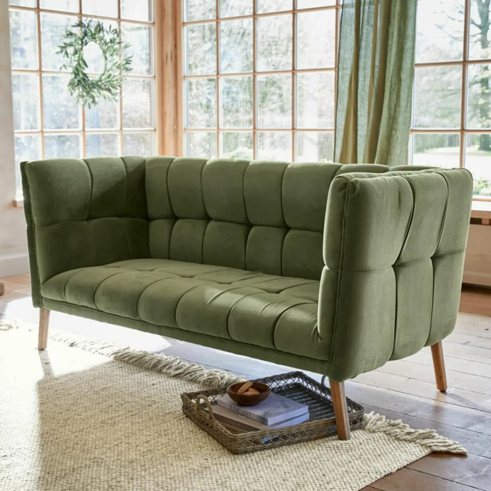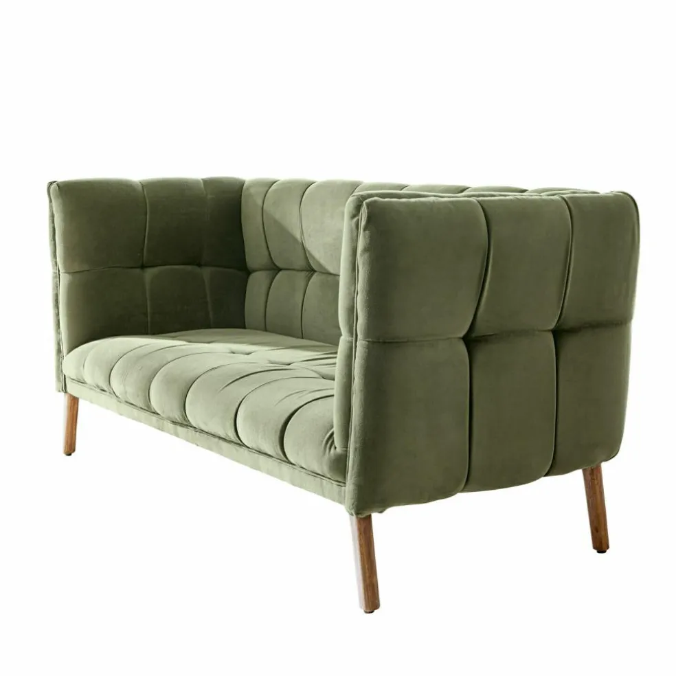 250 Jahre ist es her, seit das erste Chesterfield-Sofa das Licht der Welt erblickte und auch die Nachfahren dieser Möbel-Klassiker verfügen immer noch über eine einzigartige Ausstrahlung. Dieses Sofa zeigt zwar die typische Steppung, doch nicht klassisch rautenförmig, sondern rechteckig, was optimal mit der geradlinigen Form des Sofas korrespondiert. Mit den fast senkrechten Seiten- und Rückenlehnen wirkt der Zweisitzer eleganter als die opulenten Vorbilder und außerdem kann er so auch in kleineren Räumen oder in einer Nische platziert werden. Bezogen ist das Sofa mit einem edel schimmernden Baumwollsamt, der Sie mit seiner streichelweichen Haptik verwöhnen wird. Unter dem Samtbezug sorgen eine hochwertige Polsterung und ein stabiles Gestell aus Mangoholz dafür, dass Sie jede Stunde in dem Sofa genießen werden. Immer in dem Wissen, dass es in bester Handwerksqualität gefertigt wurde, wie die ersten Chesterfield-Modelle in der Werkstatt des englischen Möbelbauers Robert Adam.