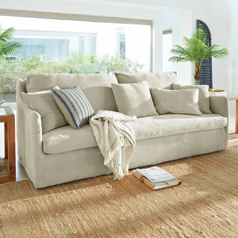 Ein Sofa, das durch Komfort und natürliche Eleganz überzeugt. Die großzügige Sitzfläche bietet weiche Polsterung, die für pure Entspannung sorgt – ideal für gesellige Stunden oder entspannte Momente für sich allein. Die Bezüge aus strukturiertem Stoff verleihen dem Möbelstück einen dezenten Charakter und lassen sich mühelos abnehmen, um eine einfache Pflege zu gewährleisten. Eine klare Formgebung harmoniert perfekt mit dem stilsicheren Farbton, was es zu einem vielseitigen Begleiter in verschiedenen Wohnbereichen macht. Dieses Sofa verbindet Ästhetik und Funktionalität auf beeindruckende Weise und wird schnell zum Herzstück Ihres Zuhauses.