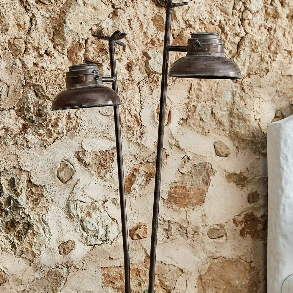 Das Solar-Laternen-Set im Antikbronze-Finish bringt nostalgisches Flair und eine sanfte Beleuchtung in Ihren Außenbereich. Die fein gearbeiteten Laternenköpfe fangen das Licht der Sonne ein und verwandeln es in ein warmes, dezentes Leuchten, das den Garten, Wege oder Blumenbeete abends stimmungsvoll in Szene setzt. Die eleganten Stäbe mit zartem Ornamentdetail lassen sich sicher und einfach in die Erde stecken und sorgen dafür, dass die Laternen in perfekter Höhe strahlen. Mit umweltfreundlicher Solartechnologie sind die Laternen unabhängig von Kabeln und schaffen eine harmonische Atmosphäre im Einklang mit der Natur.