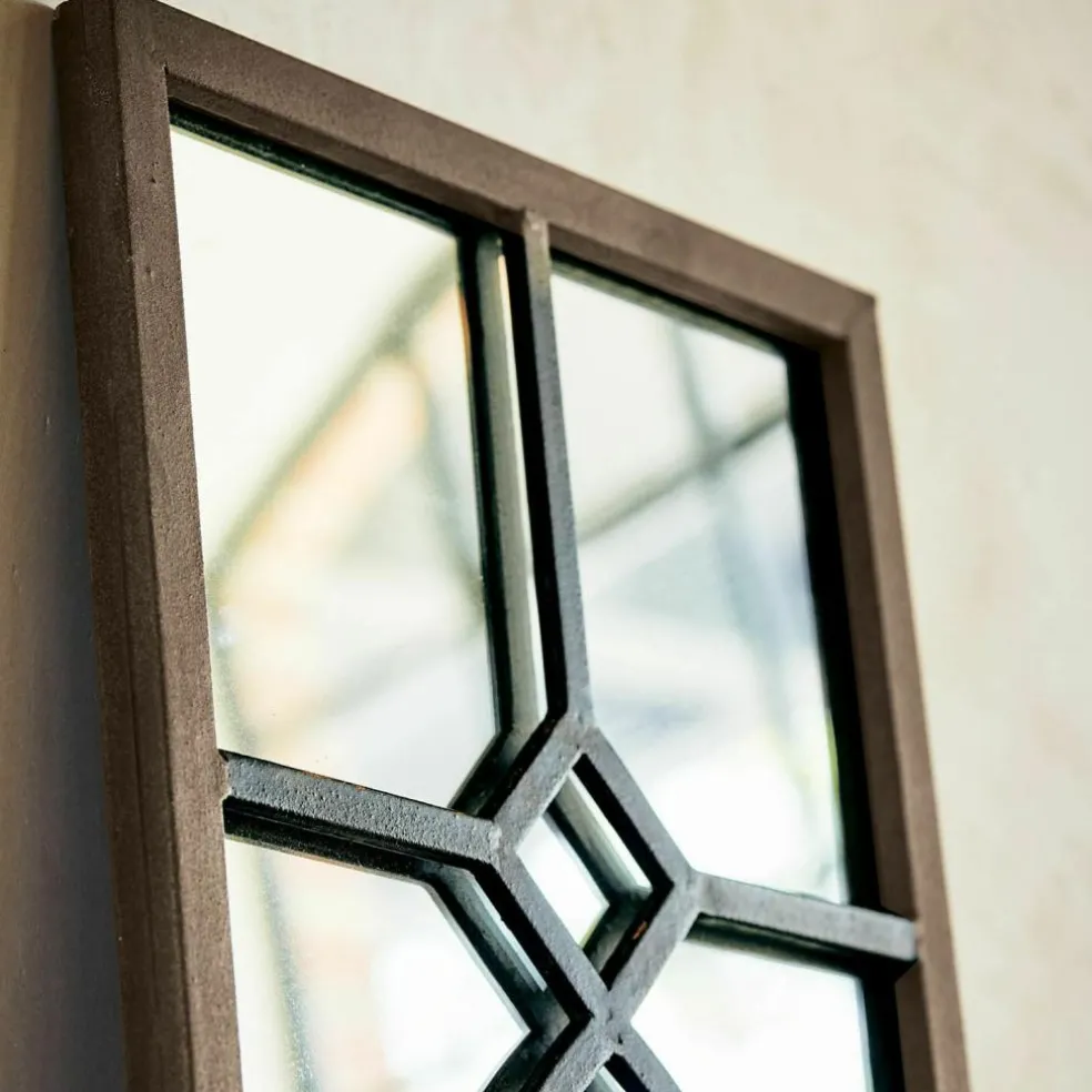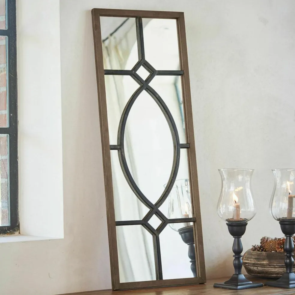 Wer Wert auf eine individuelle Atmosphäre in seinen vier Wänden legt, wird jeden Einrichtungsgegenstand mit großer Sorgfalt wählen. Das gilt nicht nur für große Möbelstücke wie Schränke oder Sofas, sondern auch für die passenden Accessoires. Mit diesem Spiegel haben Sie ein erlesenes Deko-Objekt entdeckt, das mit seinem verspielten Shabby-Charme Ihren Wohnräumen eine ganz persönliche Note verleihen wird. Die besondere Blickfangwirkung erzielt der Spiegel vor allem durch seinen kunstvoll gearbeiteten Rahmen aus massivem Eisen, der ein reizvolles Wechselspiel von ornamental gestalteten Elementen mit strengen Geraden zeigt. Und als sei das noch nicht genug, wurden die zierlichen Rahmenelemente mit einem Antik-Finish veredelt, das aus diesem Spiegel ein faszinierendes Vintage-Objekt macht, das in vielen Räumen seinen Platz finden kann. Im Schlafraum hilft der Spiegel bei der Kleiderauswahl und beim perfekten Styling, im Eingangsbereich des Hauses erlaubt er einen letzten prüfenden Blick auf Optik und Frisur. Aber auch im Wohnraum wird die schwungvoll geteilte Spiegelfläche für interessante Effekte sorgt. Unser Tipp: Hängen Sie zwei Spiegel nebeneinander oder an zwei gegenüberliegende Wände und erleben Sie die faszinierende Verdoppelung der Raumwirkung. Mit den zwei stabilen Haken auf der Rückseite können Sie den Spiegel einfach und sicher – hochkant – an jeder Wand anbringen.