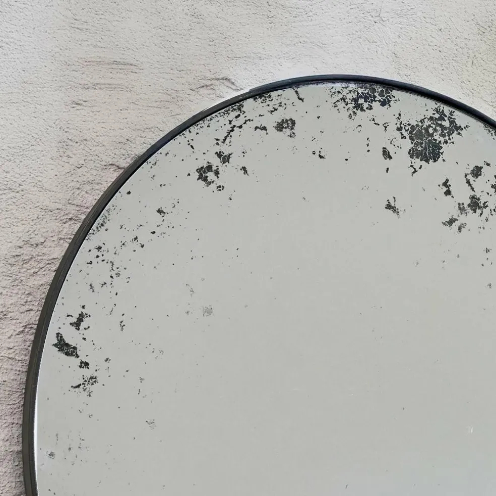 Dieser Spiegel ist mehr als nur ein funktionaler Begleiter – er ist ein Blickfang mit Geschichte. Die antik verspiegelte Spiegelfläche erinnert an vergangene Zeiten und verleiht jeder Spiegelung eine geheimnisvolle Tiefe. Winzige Unregelmäßigkeiten in der Patina erzählen von Charakter und Charme, ohne aufdringlich zu wirken. Der schmale Rahmen aus mattem Eisen wirkt wie ein grafischer Kontrapunkt zur organischen Unruhe des Glases – zurückhaltend, aber bestimmt. Ob in einem romantisch gestalteten Schlafzimmer oder als Kontrast in einem klaren Loft – dieser Spiegel schafft Atmosphäre.
