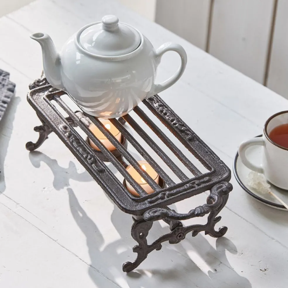 Dieses hochwertige Stövchen ist nicht nur wunderschön, sondern auch sehr vielseitig. Seine Größe ist nicht nur ideal, um Tee warmzuhalten – auf dem breiten Rost findet auch ein Topf oder eine Pfanne ausreichend Platz. Somit ist dieses gusseiserne Schmuckstück ein perfektes Accessoire für den festlich gedeckten Esstisch. Natürlich können sie das Stövchen auch nutzen, um das Fondue-Set ihrer Wahl zu erweitern.