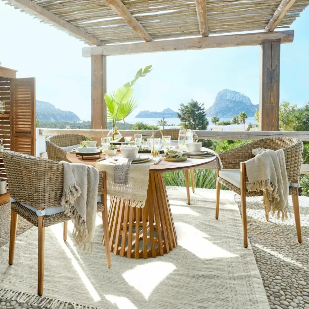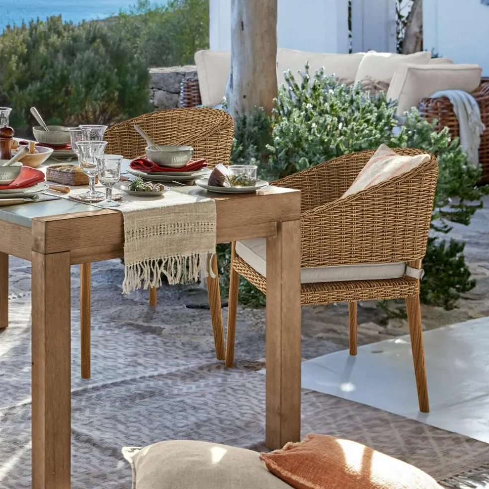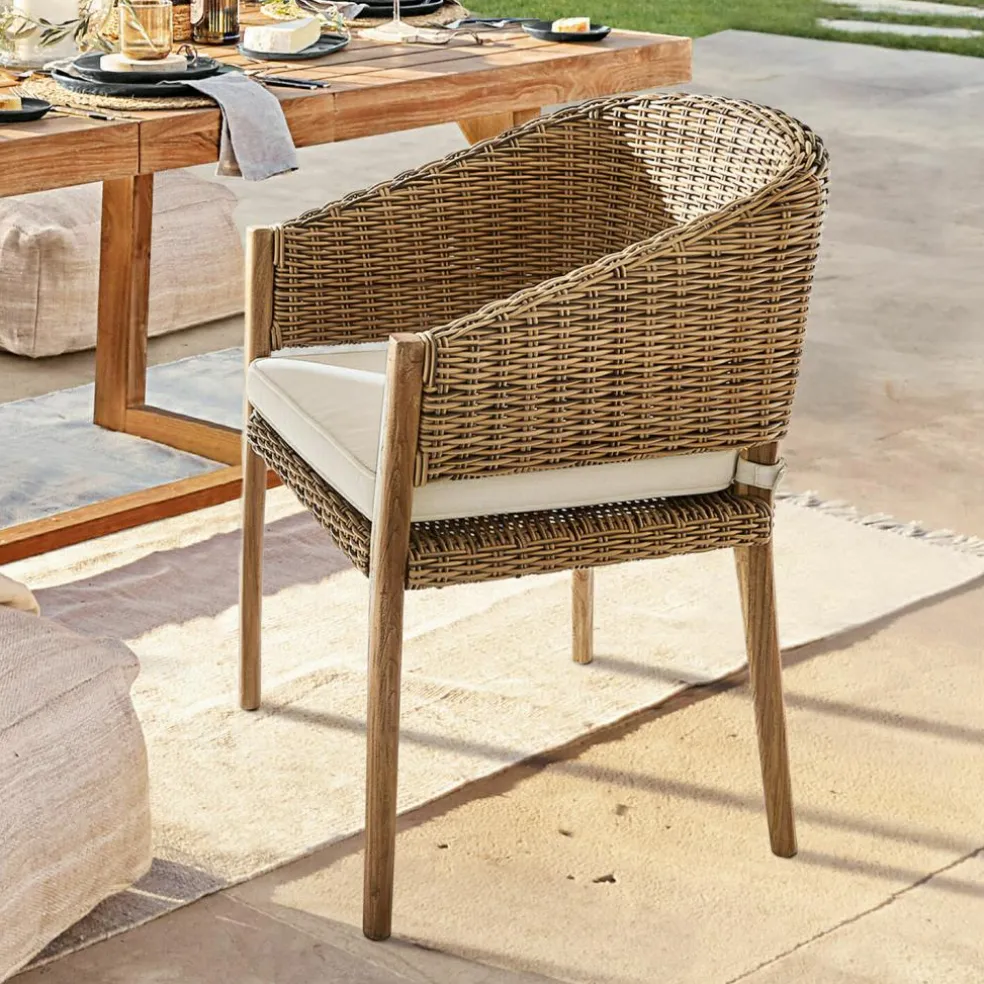 Die Grillen zirpen, am Ende der grünen Hügel der Toskana versinkt langsam die Sonne und malt mit verwunschenen Farben einen Sonnenuntergang, auf dem Terrassen-Tisch steht ein Glas Wein – mit diesem wunderschönen Stück holen Sie sich nicht nur das Gefühl eines Sommers im Süden nach Hause, sondern gleichzeitig eine komfortable, hochwertig gefertigte Sitzgelegenheit. Der Stuhl sieht ganz wundervoll im pittoresken Garten aus, passt aber auch gut auf einen verträumten Balkon und eine märchenhafte Terrasse oder in die stimmungsvollen Innenräume. Die Rückenlehne und die Sitzfläche des Stuhls sind aus Polyrattan und von Hand gewickelt. Die Füße aus tropischem Teakholz verleihen seinem rustikal-romantischen Design einen eleganten Touch.
