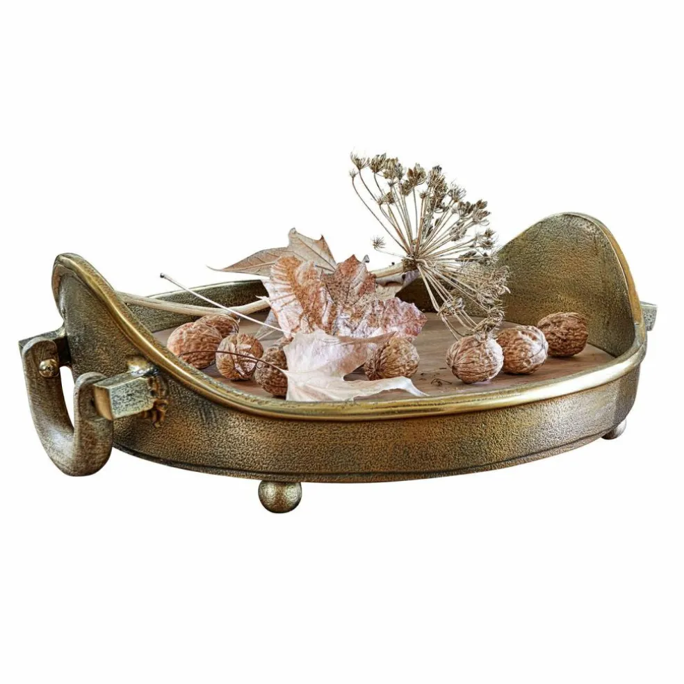 Ein sehr luxuriöses und elegantes Accessoire. Es besteht aus vernickeltem Aluminium und edlem Mangoholz im geschmackvollen Materialmix. Als Dekoration oder um den Tisch zu decken ist es einfach ideal. Stellen Sie sich ein gemütliches Wochenend-Frühstück vor: Arrangieren Sie frische Brötchen, duftenden heißen Kaffee, Orangensaft, Honig, feine Konfitüren und gekochte Eier darauf und freuen Sie sich auf diesen Schmaus. Vielleicht sogar himmlisch entspannt im Bett? Auch um den Tisch zum abendlichen Dinner bei gutem Wein und würzigen Köstlichkeiten zu decken ist das Luxus-Modell der perfekte Helfer. Dank der seitlichen Griffe ist es ganz leicht zu tragen. Doch auch als Basis für rein dekorative Arrangements eine wunderbare Wahl, etwa mit Kerzen, Windlichtern und frischen Blüten geschmückt. Wahrer Luxus für Detailverliebte.