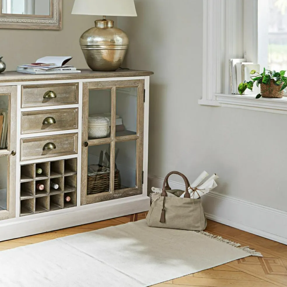 Diese wunderschöne und schlicht gestaltete Tasche ist eine Komposition aus hochwertiger Baumwolle und herrlich weichem Büffelleder. Sie lässt sich mit unterschiedlichsten Outfits kombinieren. Ihre robuste Natur und das zeitlose Design werden Ihnen ein Leben lang Freude bereiten – zumal die natürlichen Materialien mit der Zeit sogar noch schöner werden. Die gefranste Quaste ist ein raffiniertes Detail, das den hochwertigen Charakter der Tasche unterstreicht. Die stabilen Doppelhenkel sind großzügig dimensioniert und fassen sich einfach wunderbar an. Der gefütterte Innenbereich bietet selbstverständlich ein dediziertes Kompartment zur Aufbewahrung Ihrer Utensilien. So haben Sie Schlüssel, Lipgloss und Co immer griffbereit.