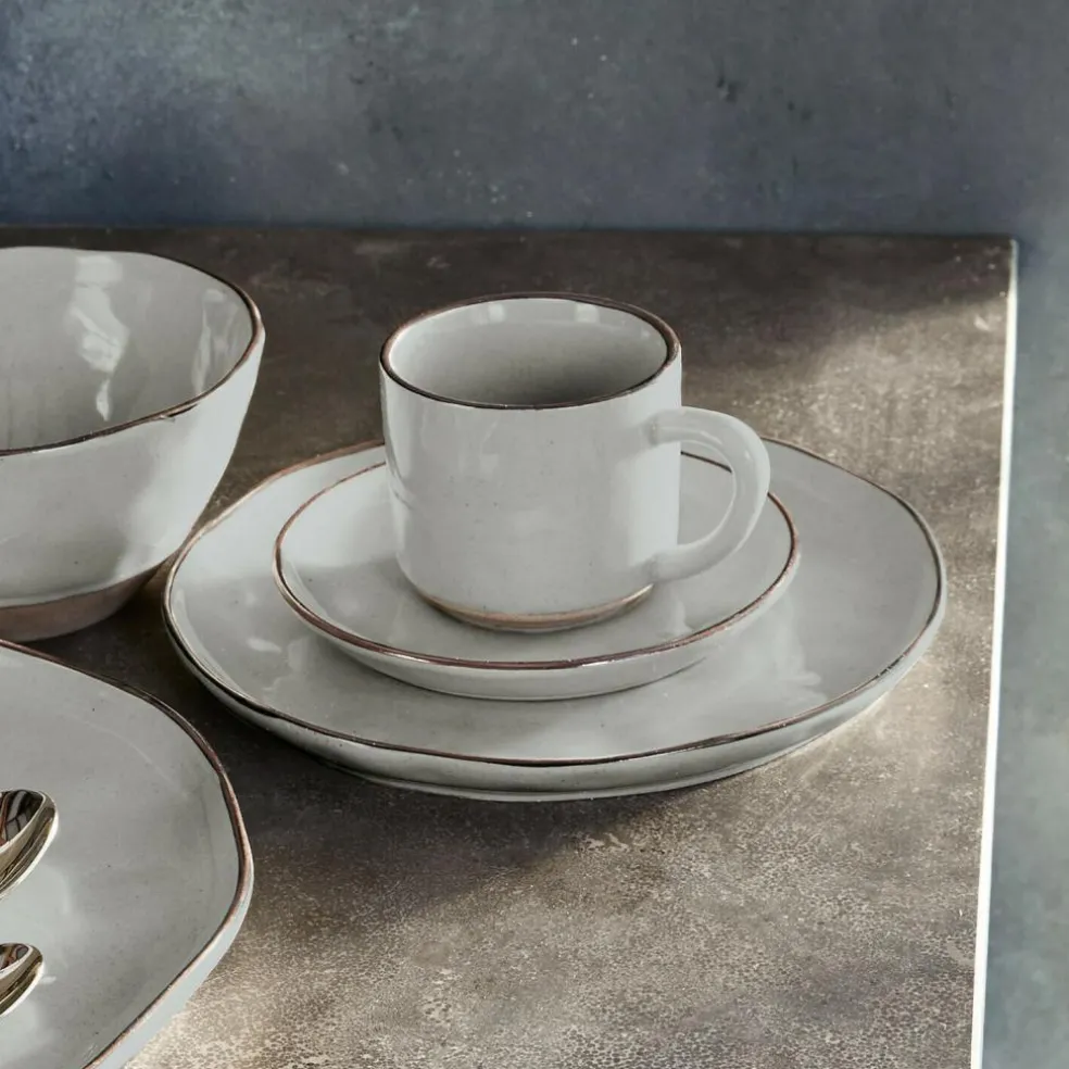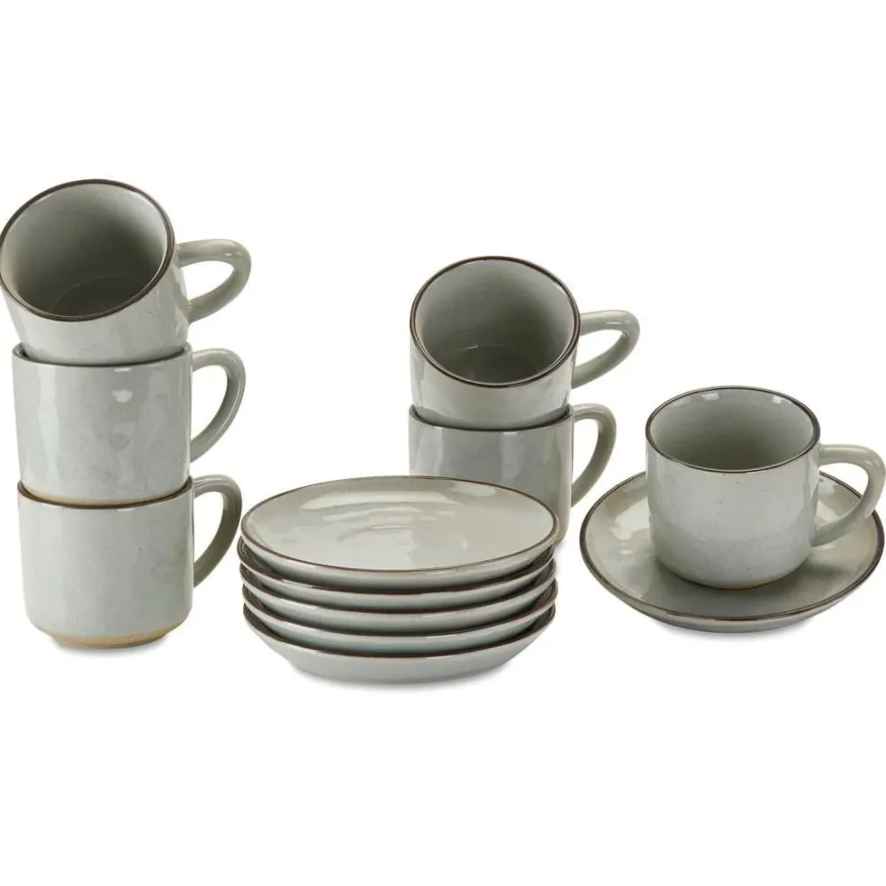 Sechs Schmuckstücke, die aussehen wie von Hand gemacht. Der besondere, gewollt unebene Charakter der edlen Tassen aus Steinzeug gibt ihnen individuellen Charme. Sie sind glänzend glasiert, außer am Boden, und haben einen dunklen Rand oben. Der mediterrane Charakter entführt Sie bei Tisch unter südliche Sonne und lässt uns von Spanien oder Italien träumen. Die Untertassen sind auch schon im Set enthalten. Genießen sie hieraus den ersten Kaffee am Morgen, einen Eistee oder auch Obst, Müsli, Eiscreme oder Joghurt. Für die große Runde mit Freunden oder der ganzen Familie erhalten Sie ein geschmackvolles, dezentes Set, das jede Tafel adelt. Drinnen wie draußen erleben Sie hiermit zu jeder Jahreszeit echte Gemütlichkeit und ein Gefühl der Entschleunigung, wenn Sie sich bewusst einfach nur einem Getränk oder einer kleinen Speise widmen.