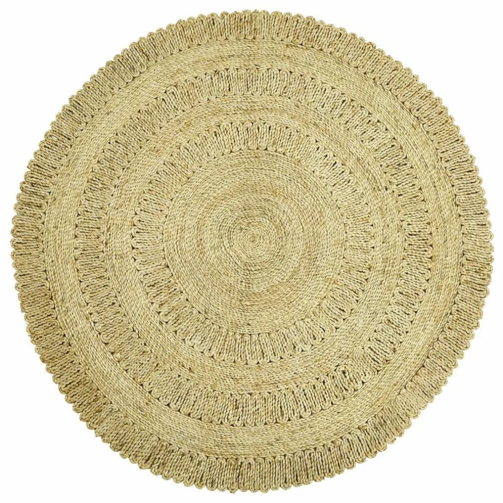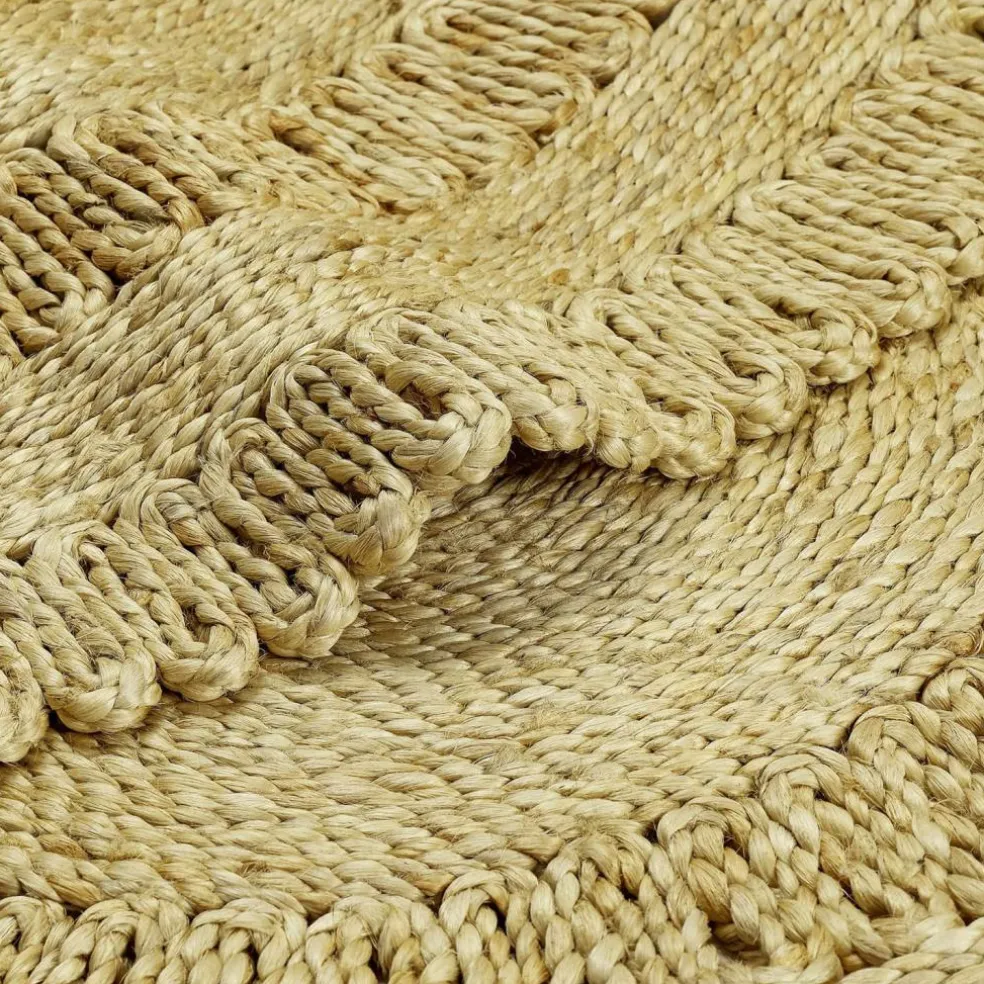 Hier präsentiert sich ein besonders schöner Juteteppich, der durch seine kunstvollen Nähte und sein rundes Design besticht. Der Teppich, gefertigt aus robustem Jutematerial, bringt eine warme, erdige Farbpalette in Ihr Zuhause. Die harmonischen Kreismuster und die strukturierte Oberfläche verleihen jedem Raum einen Hauch von rustikalem Charme und Behaglichkeit. Ob im Wohnzimmer unter dem Couchtisch, im Schlafzimmer neben dem Bett oder im Essbereich als dekorativer Blickfang – dieser Teppich setzt stilvolle Akzente und sorgt für eine einladende Atmosphäre. Lassen Sie sich von der Kombination aus Funktionalität und Ästhetik begeistern und verwandeln Sie Ihr Zuhause in eine Oase der Gemütlichkeit.