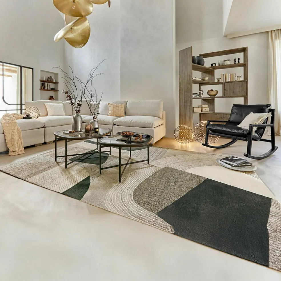 Wie ein Bild auf dem Boden entfaltet dieser Teppich seine Wirkung – ganz ohne laute Farben, dafür mit harmonischem Design und hochwertiger Haptik. Die getuftete Oberfläche aus reiner Wolle ist angenehm dicht und sorgt für eine behagliche Atmosphäre unter den Füßen. Besonders raffiniert: Das Spiel mit verschiedenen Florhöhen bringt Struktur ins Muster und verleiht den grafischen Bögen und Flächen einen fast skulpturalen Charakter. Die gedeckten Farbnuancen machen ihn zu einem idealen Begleiter für moderne wie auch klassisch eingerichtete Räume. Ein Teppich, der nicht nur wärmt, sondern Räume bereichert.