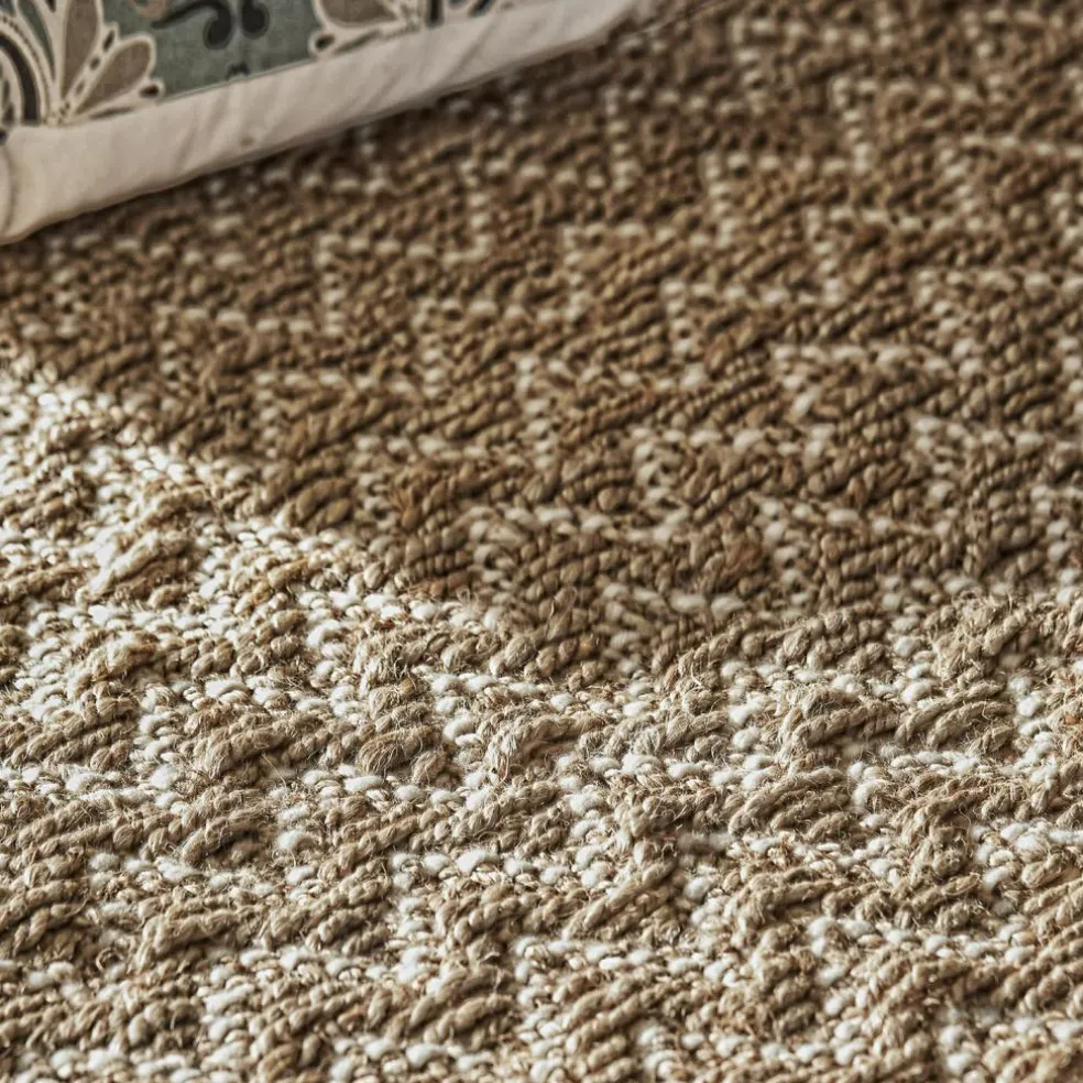 Wer einen Teppich aus Naturfasern sucht, der außerdem so schnell nichts übelnimmt und auch in viel frequentierten Bereichen der Wohnung für wohnliches Flair sorgt, trifft mit einem Juteteppich die beste Wahl. Denn Jute ist die stärkste und haltbarste Naturfaser, die sich außerdem durch einen sanften Glanz auszeichnet, weshalb sie oft als „goldene Faser“ bezeichnet wird. Für diesen Teppich wurde die extrem robuste, reißfeste Jute mit wärmender, atmungsaktiver Wolle kombiniert, die für die angenehme Haptik und die anheimelnde Note sorgt. Mit dem klassischen Zickzackmuster und den dezenten Naturtönen fügt sich der Teppich in die verschiedensten Interieurs und bildet im Wohnraum wie im Flur oder der großzügigen Landhausküche einen stilvollen Blickfang. Traditionell von Hand gewebt und mit Fransen an den kurzen Seiten versehen.