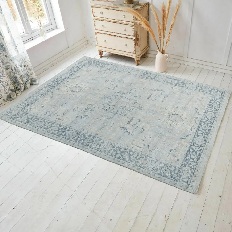 Der gewebte Teppich strahlt eine zeitlose Eleganz aus, die jeden Raum in ein gemütliches Refugium verwandelt. Das zarte, detaillierte Muster in sanften Farbtönen auf einem cremefarbenen Hintergrund erinnert an kunstvoll gefertigte Vintage-Teppiche und verleiht Ihrem Interieur eine edle Note. Die weiche Rückseite sorgt für zusätzlichen Komfort unter den Füßen und schützt zugleich Ihren Boden vor Kratzern. Dieser Teppich ist mehr als nur ein Einrichtungsgegenstand, er ist ein Ausdruck von Stil und Wohlbefinden, der Ihr Zuhause in eine Oase der Ruhe und Schönheit verwandelt.