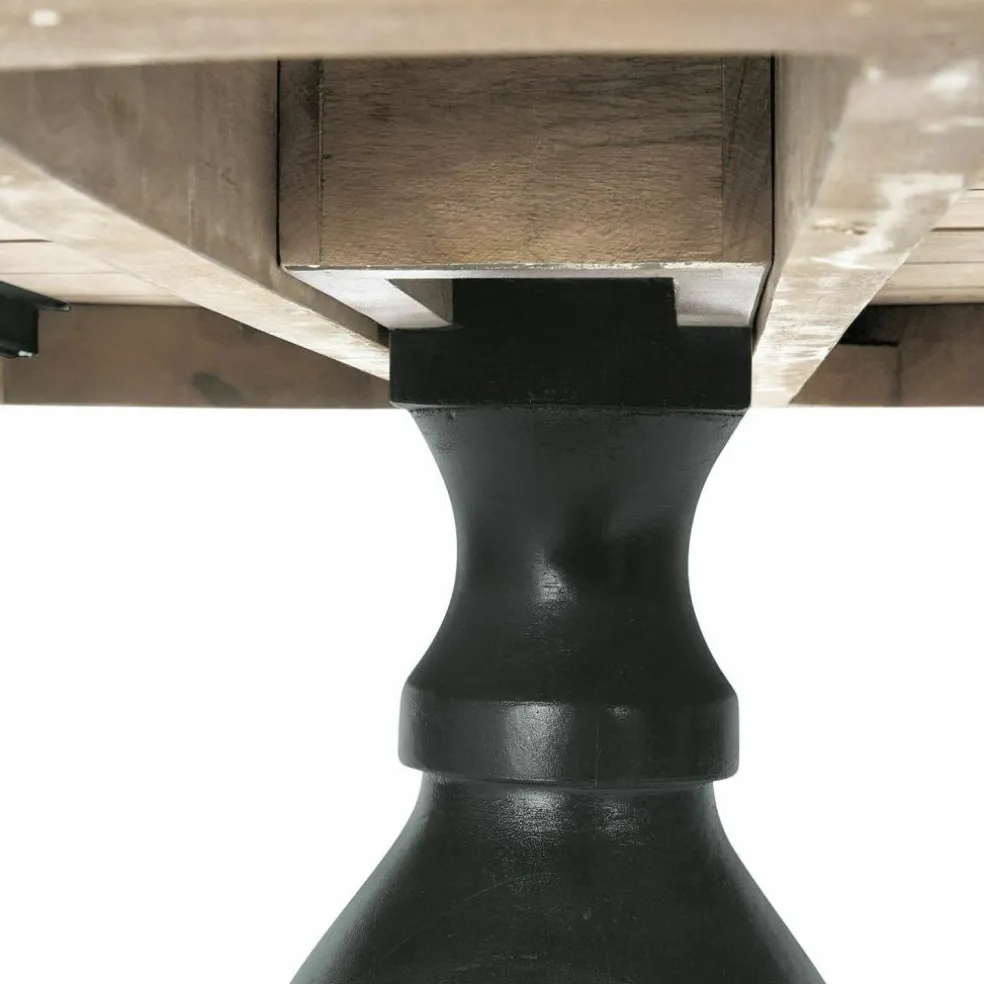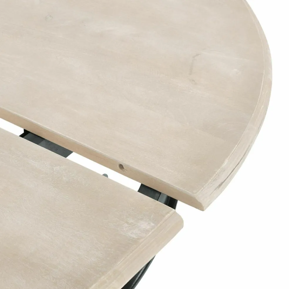 Ein attraktiver Mix aus unterschiedlichen Oberflächen: Die Platte dieses außergewöhnlichen Tisches zeigt sich in ihrem ganz natürlichen Charme. Sie ist aus hochwertigem, robustem Mangoholz und besticht durch ihre matte, naturbelassene Oberfläche. Getragen wird die Platte von einem wunderschönen gedrechselten Fuß, dem sein Lackfinish besonderen Glanz verleiht. Besonders praktisch: Vergrößern oder verkleinern Sie dieses Schmuckstück, indem Sie die Tischplatte auseinander- beziehungsweise zusammenschieben. So können Sie die Tischgröße passend zur Anzahl Ihrer Gäste gestalten. Durch Klammern an der Unterseite sind die Elemente sicher fixiert. Aber natürlich lässt sich dieses Schmuckstück nicht nur als Festtafel nutzen. Auch im Wohnzimmer, Wintergarten oder im Künstleratelier ist der Tisch ein faszinierender Blickfang und macht Ihr schönes Zuhause noch stilvoller.