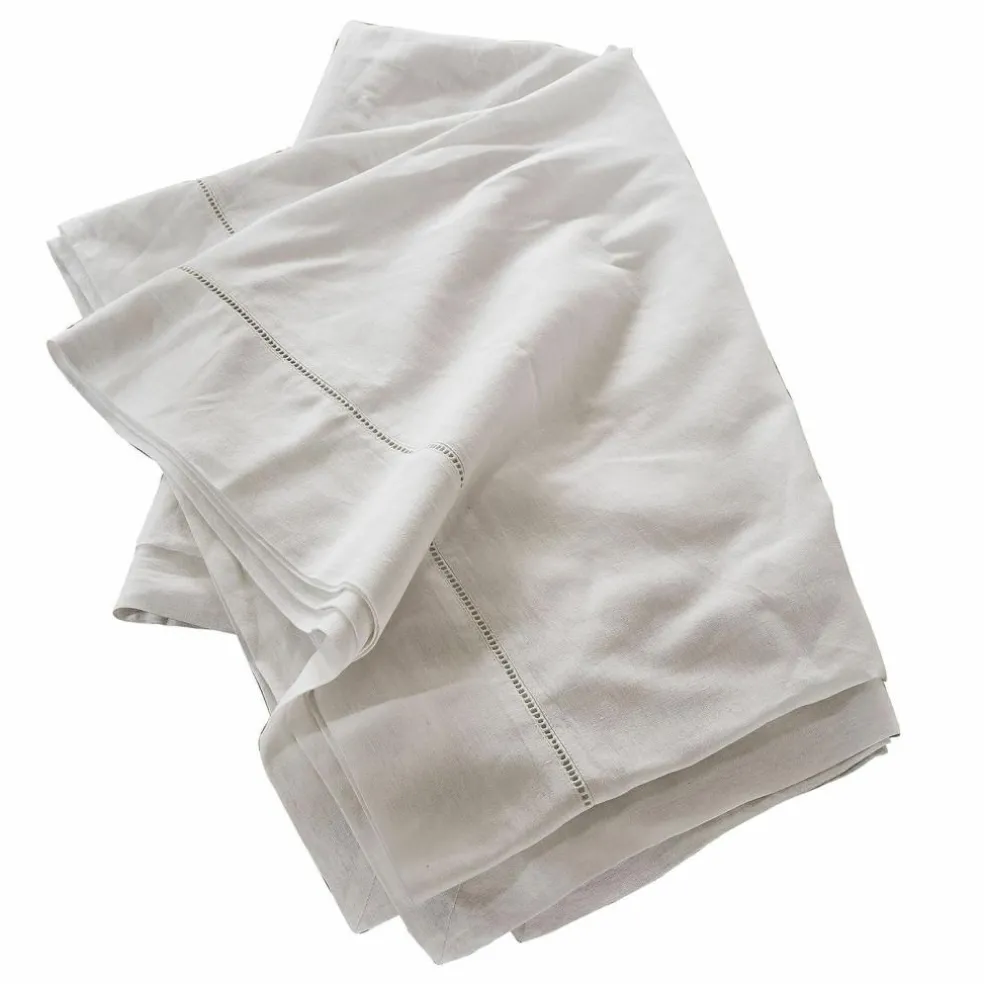 Verleihen Sie Ihrem Tisch einen Hauch von zeitloser Schönheit mit dieser edlen Tischdecke aus einem Leinen-Baumwolle-Gemisch. Das natürliche Gewebe verbindet die rustikale Robustheit des Leinens mit der sanften Weichheit der Baumwolle und schafft so eine unvergleichlich angenehme Haptik. Das umlaufende Lochmuster ist nicht nur ein Blickfang, sondern auch ein Zeichen feiner Handwerkskunst, das jede Mahlzeit in eine besondere Gelegenheit verwandelt. Ob beim Frühstück mit der Familie, einem festlichen Dinner oder einem gemütlichen Abendessen mit Freunden – diese Tischdecke setzt stets den richtigen Akzent. Kombinieren Sie sie mit schlichtem Geschirr für eine rustikale Atmosphäre oder mit feinem Porzellan für einen Hauch von Raffinesse.