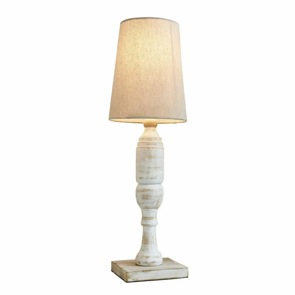 Mit ihrer Kombination aus natürlichen Materialien und einem modernen Finish strahlt diese Tischlampe eine dezente Wärme aus. Der massive Korpus aus Kiefernholz erhält durch das White-Washed-Finish eine charmante, leicht verwitterte Optik, die perfekt in verschiedene Einrichtungsstile passt. Der Lampenschirm aus Leinen und Polyester in neutralen Tönen sorgt dafür, dass das Licht sanft gefiltert wird und eine gemütliche Atmosphäre entsteht. Diese Lampe ist nicht nur eine praktische Lichtquelle, sondern auch ein stilvolles Wohnaccessoire, das Gemütlichkeit und Harmonie in den Raum bringt.