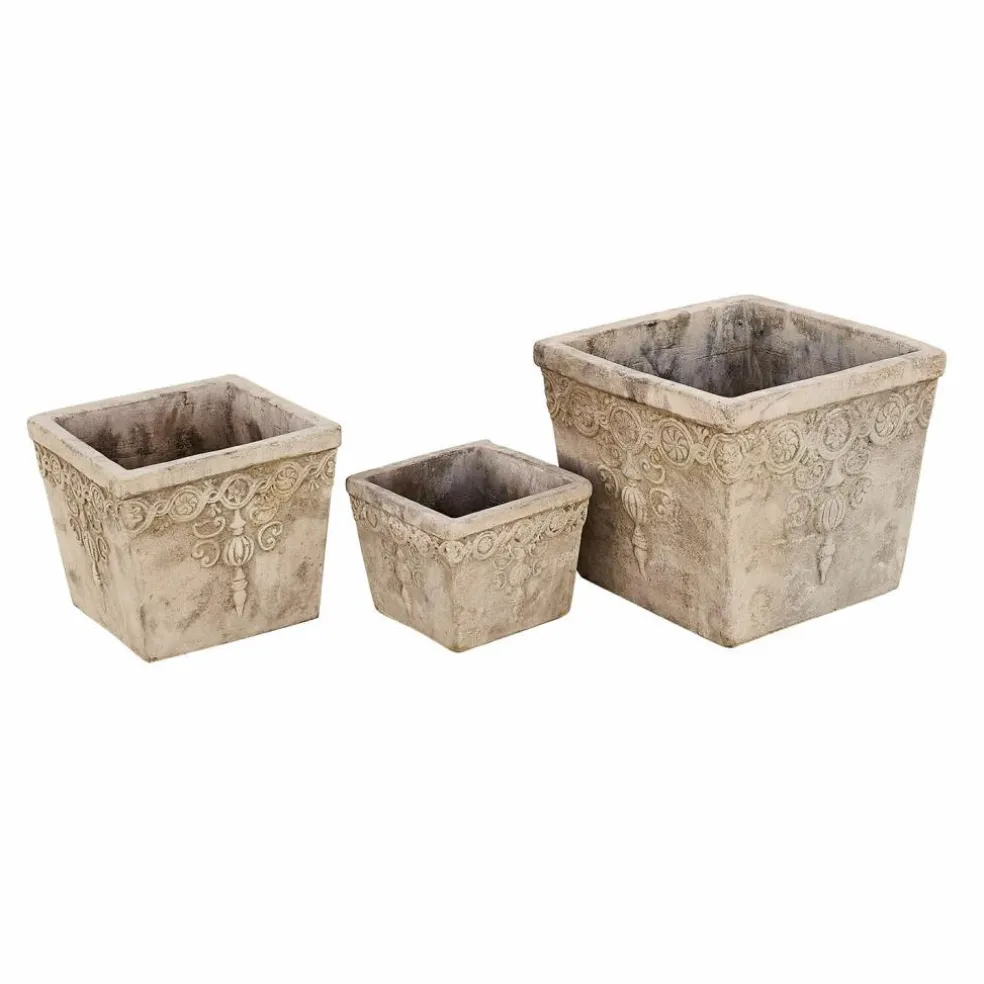Dieses sehr stilvolle Trio bringt eine mediterrane Note in Ihren Garten, auf den Balkon oder die Veranda. Und auch innen genutzt machen diese drei schönen Übertöpfe eine tolle Figur. Sie sind mit kunstvollen Ornamenten verziert und bestehen aus Ton in Terrakotta-Optik. Ein Ablaufloch ist vorhanden, sodass sich keine Staunässe bildern kann. Sie erhalten drei unterschiedliche Größen im Set und können so wunderbare Arrangements mit Grünpflanzen, Kräutern, Blüten oder Gräsern zaubern – in jeder Saison eine Freude. Freuen Sie sich auf ein Flair wie am Mittelmeer für Ihre grüne Oase.