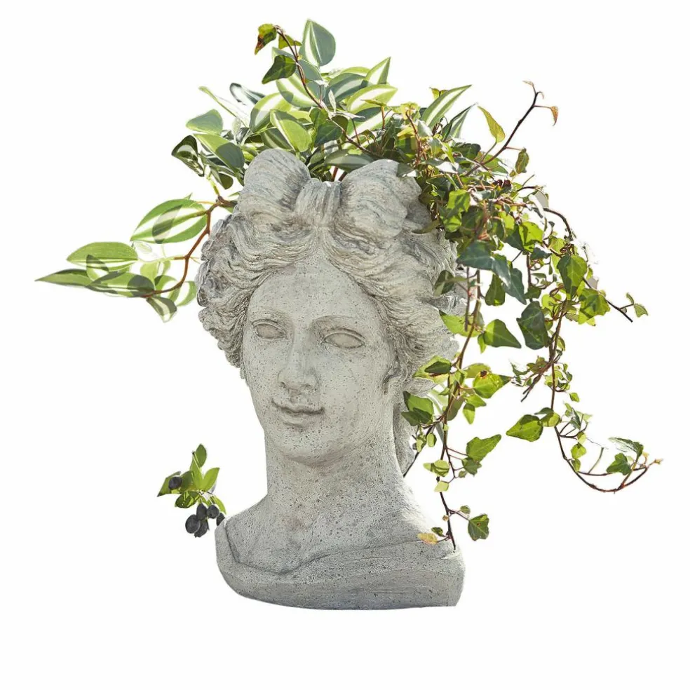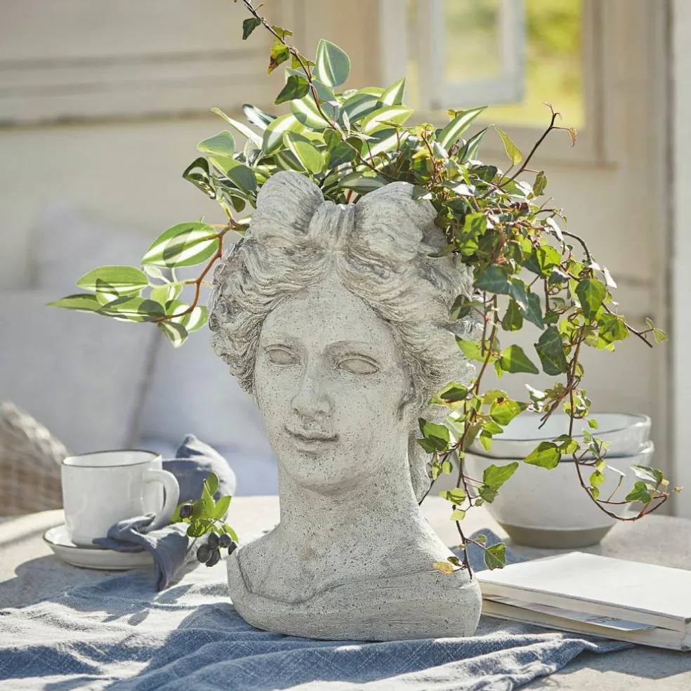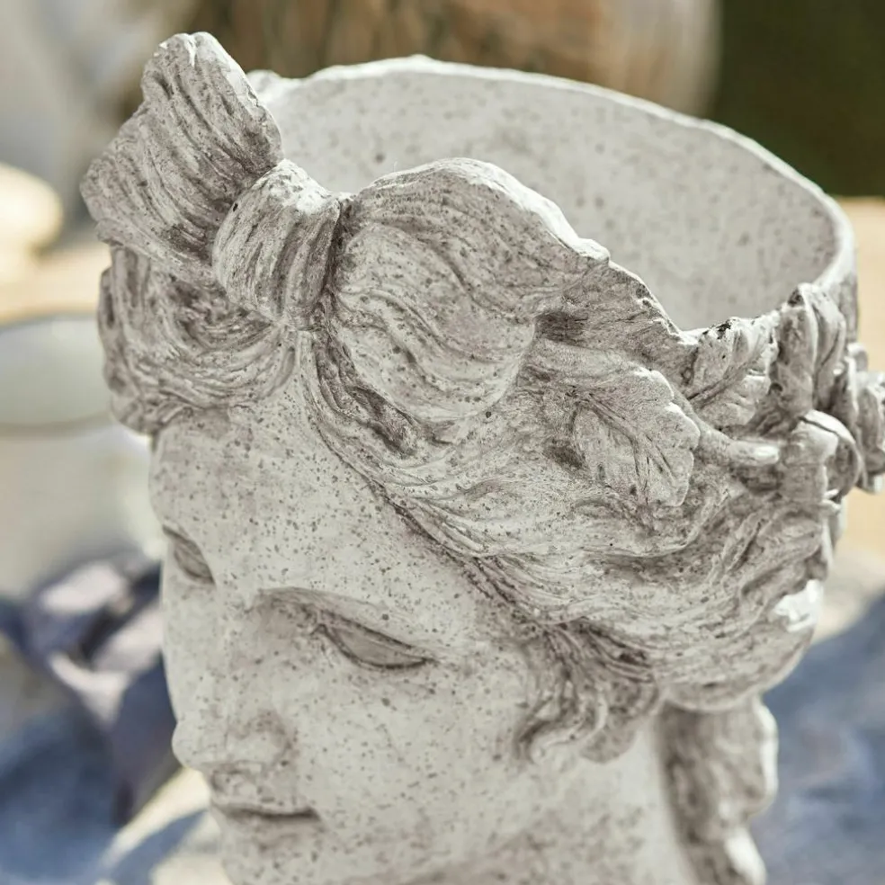 Verwandeln Sie Ihren Garten in ein edles Park-Ambiente. Zum Beispiel mit diesem originellen Übertopf, der an eine Skulptur aus der griechischen Mythologie erinnert. Handgefertigt aus Polyresin für eine täuschend echte Naturstein-Optik und veredelt mit antikem Finish, das das nostalgische Flair unterstreicht. Auf einer Blumensäule oder dem Mauervorsprung Ihrer Terrasse kommt das Accessoire besonders schön zur Geltung – bestückt mit Farn oder Lavendel wird es zu einem optischen Highlight. Ein außergewöhnliches Schmuckstück, dessen liebevolle Gestaltung auch die Aufmerksamkeit Ihrer Gäste auf sich zieht. Robust und wetterfest wird der Übertopf über Jahre mit Eleganz und Schönheit verzaubern.