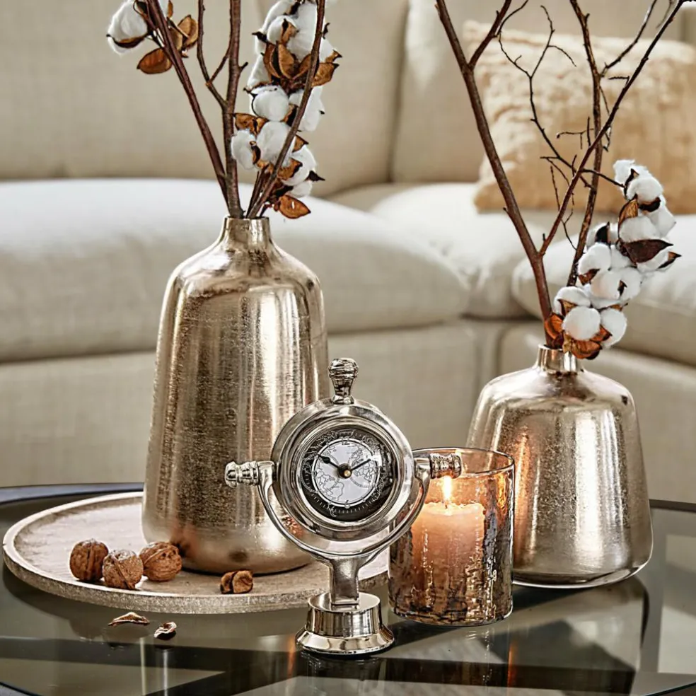 Ein Hauch von Abenteuer, ein Stück vergangener Zeiten – diese Uhr scheint direkt vom Kapitänstisch eines nostalgischen Dampfschiffs zu stammen. Ihr massiver Standfuß sorgt für Stabilität, während die schwenkbare Aufhängung nicht nur spielerisch wirkt, sondern auch praktisch ist: So behalten Sie die Zeit aus jedem Winkel im Blick. Das glänzende Metall und das fein illustrierte Ziffernblatt bringen einen Hauch von Fernweh in jedes Ambiente – sei es auf dem Schreibtisch, im Regal oder auf der Konsole. Dieses Modell ist nicht nur funktional, sondern ein echtes Sammlerstück für Liebhaber außergewöhnlicher Designs.