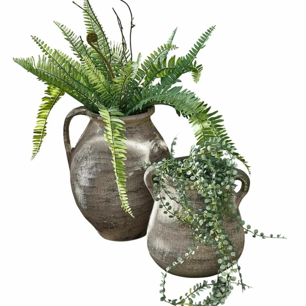 Mit diesem 2er Set aus Terrakotta-Vasen setzen Sie auf eine charmante Kombination aus rustikaler Natürlichkeit und moderner Raffinesse. Die Außenstruktur begeistert durch ihre matte, authentische Optik, die den natürlichen Charakter der Terrakotta hervorhebt. Innen überzeugt eine glasierte Oberfläche, die den Vasen ein modernes Flair verleiht und sich ideal für Blumenarrangements oder Dekorationen eignet. Ob zusammen oder einzeln platziert – die beiden unterschiedlichen Größen eröffnen zahlreiche kreative Dekorationsmöglichkeiten und passen sich nahtlos in verschiedene Wohnstile ein.