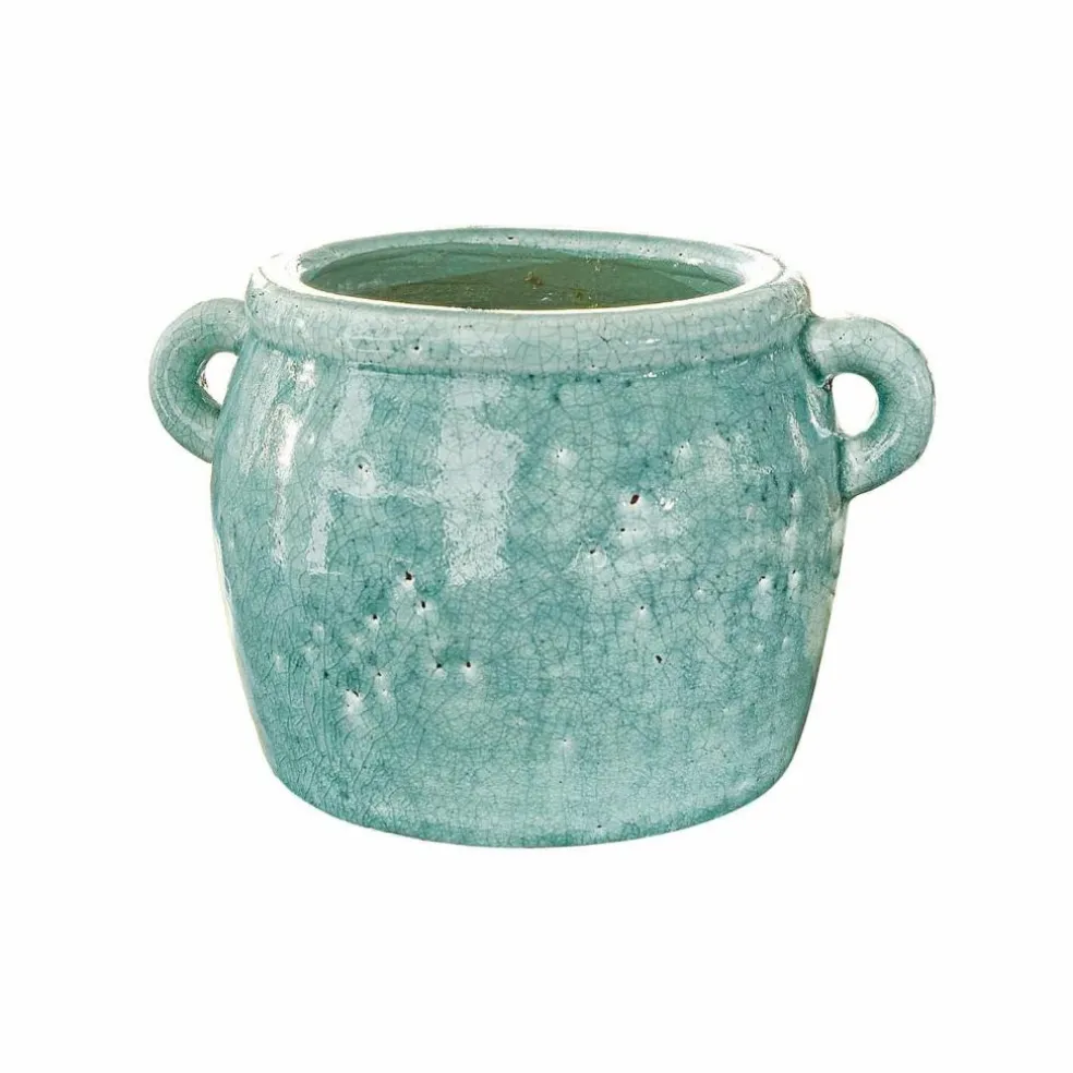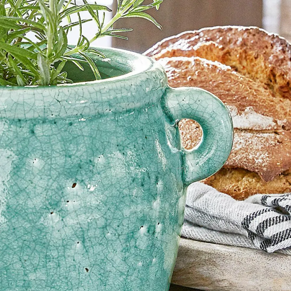 Haben Sie schon einmal einem Töpfer bei der Arbeit zugeschaut? Wie ein Teller, ein Becher, ein Krug auf der Töpferscheibe nach und nach Gestalt annimmt? Dann werden Sie diese ebenfalls im traditionellen Stil von Hand gefertigte Vase mit ganz anderen Augen betrachten. Hier die perfekten Rundungen, auf der anderen Seite die kleinen Eigentümlichkeiten, die ihr Persönlichkeit verleihen und sie so wohltuend von industriell gefertigten Waren unterscheidet. Vor allem die kleinen Unregelmäßigkeiten in der Glasur wirken besonders charmant, als hätte die Vase bereits in der Küche der Großmutter gestanden, immer mit einem Strauß frischer Sommerblumen aus dem Garten. Auch diese Vase ist garantiert wasserdicht, damit Sie sie unbesorgt als Blumenvase nutzen können, sie eignet sich aber auch zur Aufbewahrung verschiedenster Utensilien, nicht nur in der Küche.