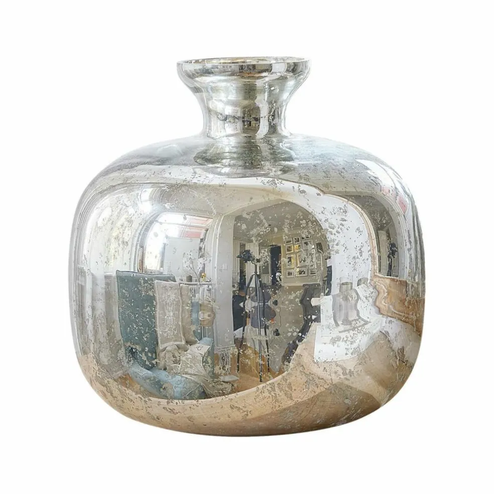Dieses schöne Objekt überzeugt mit zeitlos schöner Eleganz. Das Glas wurde mit wunderschönem Bauernsilber veredelt. Ein glänzendes Finish rundet das edle Design wunderschön ab. Die bauchige Apfelform unterstreicht die stilvolle Erscheinung. Für florale Arrangements, die ohne Wasser auskommen, ist dieses Objekt einfach perfekt. Das Befüllen mit Wasser ist nicht empfehlenswert. Dafür können Kunstblumen oder getrocknete Bouquets wunderschön präsentiert werden. Ob auf dem Couchtisch, dem Esstisch oder auf einer Konsole – dieses Accessoire verleiht dem Raum eine sehr exquisite Note. Passt wunderbar zu vielen Stilrichtungen wie dem Landhaus-Stil, klassisch elegantem Interior, Chalet-Chic oder dem maritim angehauchten Long-Island-Stil. Mit passenden Accessoires wie glänzenden Windlichtern mit Bauernsilber kreieren Sie ein stilvolles Ambiente.