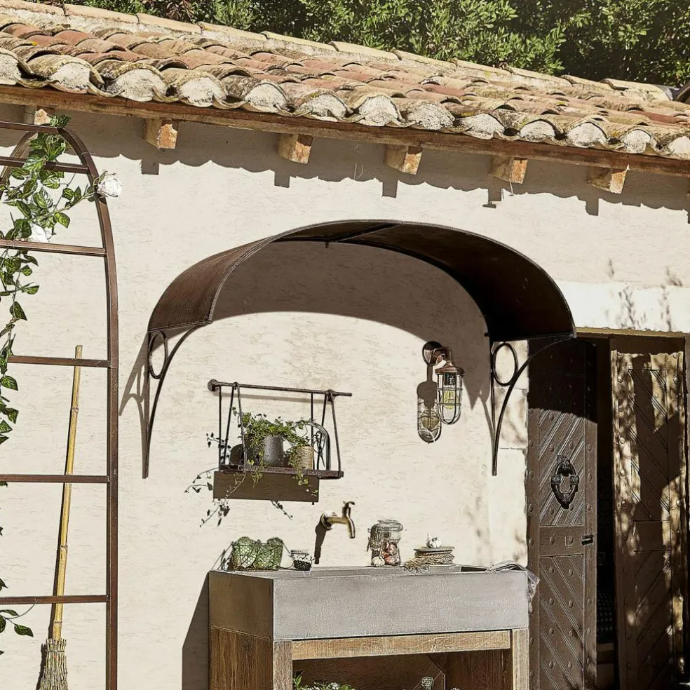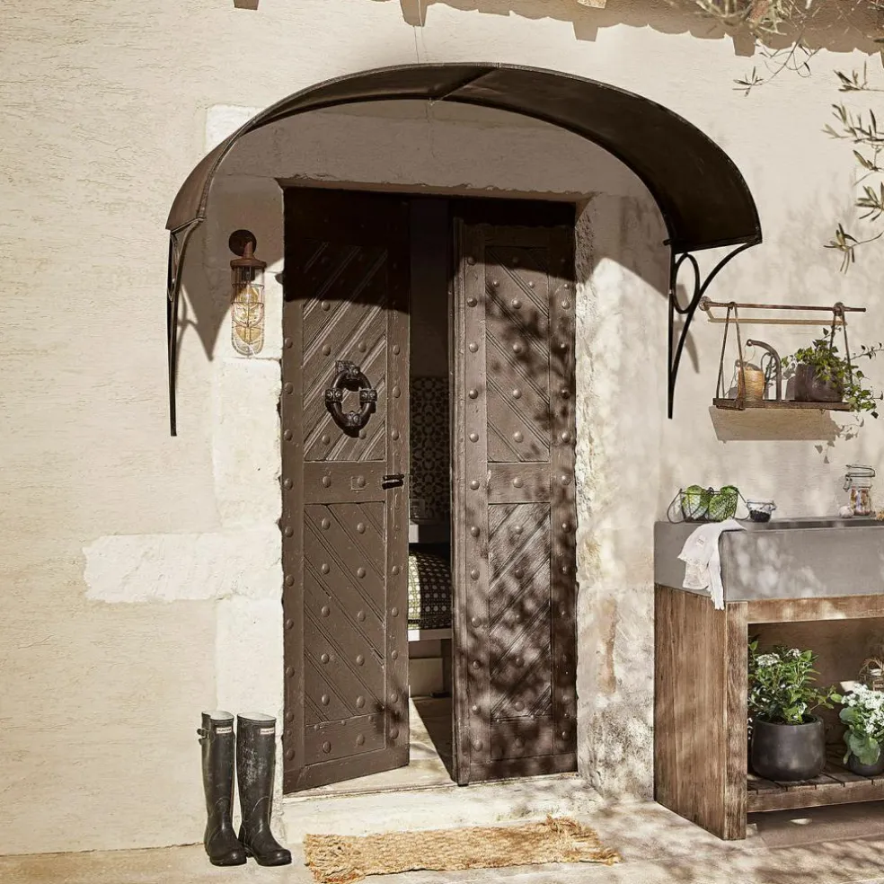 Ein Vordach setzt nicht nur optisch Akzente, es prägt auch den Charakter ihres schönen Zuhauses. Dieses formschöne Dach aus Eisen ist in hochwertiger Schmiedekunst gefertigt. Stilvoll mit geschwungenen Eisenstreben an den Seiten und einem antiken Oberflächen-Finish, das Vergangenheitsflair in das Design bringt. Auch die praktischen Qualitäten überzeugen. Denn das Dach trotzt erstaunlich gut Regen, Schnee und Hagel und bietet so Ihren Pflanzen oder anderen Gegenständen sicheren Schutz. Über der Haustür oder dem Terrassenausgang kommt es perfekt zur Geltung und strahlt französische Eleganz aus. Durch vorhandene Befestigungsstreben lässt es sich im Handumdrehen an jede Außenwand montieren.