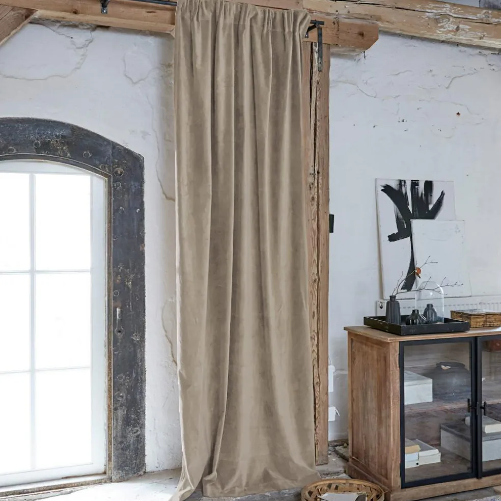Ein Wohnstil soll lebendig, gemütlich und alles andere als gewöhnlich sein. Dieser exquisite Vorhang aus hochwertigem Samt bringt dieses Gefühl auf den Punkt. Samt steht im Interieurbereich ganz oben auf der Trendliste. Kaum ein anderes Material vermittelt so viel Glanz und Glamour wie Samt – sein schmeichelweicher Flor schimmert wunderbar elegant, ergänzt durch seinen schweren, geschmeidigen Fall wird er zum exklusiven Hingucker am Fenster. Da das Textil absolut blickdicht ist, verdunkelt es Schlafbereiche zuverlässig und schützt vor störenden Einblicken an großen Fensterfronten. Durch ein Zugband lässt sich der Vorhang ganz individuell auf Wunschbreite raffen und per Aufhängeösen an die Gardinenstange anbringen. Natürlich können Sie die Gardine auch durch das Einfedeln des Zugbandes einfach auf eine Gardinenstange aufziehen. Oder Sie benutzen separat erhältliche Ringe mit Haken an denen Sie die Gardine ebenfalls an eine Gardinenstange befestigen können. Jetzt dürfen Sie entscheiden, in welchem Interieur diese Samtgardine zur Geltung kommen soll – ob Vintage-Chic, Landhaus-Look oder Industrial-Style. Eines ist jedoch sicher: Dank der intensiven Farbgebung verbreitet sie in jedem Raum eine ausgesprochen positive Stimmung.