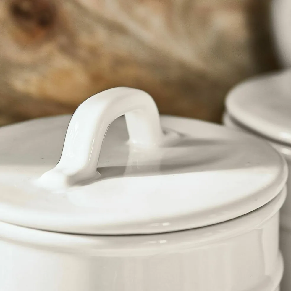 Diese Vorratsdosen aus hochwertigem Porzellan verbinden schlichte Schönheit mit praktischen Eigenschaften. Jede Dose wurde sorgfältig handbemalt, wodurch ein dezenter Glanz entsteht, der Ihrer Küche eine einladende Atmosphäre verleiht. Der luftdichte Verschluss mit Gummilippe sorgt dafür, dass Lebensmittel wie Kaffee, Mehl oder Kekse stets frisch bleiben. Das Set überzeugt durch sein klassisches Design, das sich mühelos in jede Einrichtung einfügt, und ist ein verlässlicher Begleiter für Ihre Küche – charmant, praktisch und langlebig.