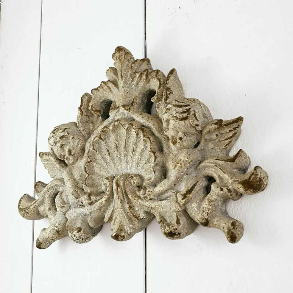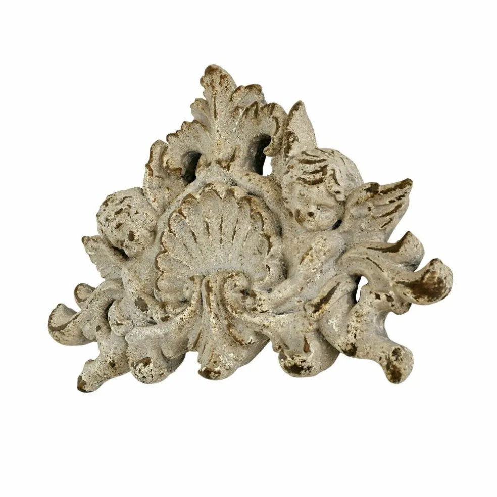 Dieses ganz bezaubernde und sehr detailreiche Wandornament mit Antik-Finish versprüht pure Romantik. Dafür sorgen die hübschen Engelchen und wunderschöne Muschel-Details. Das kunstvolle Design aus Kunststein sieht sehr authentisch antik aus, wahrlich wie aus alten Zeiten – einfach perfekt zum Shabby-Chic. Es verschönert sehr einfach jede Wand und gibt allen Räumen eine ganz besondere Note. Holen Sie sich das Flair eines verwunschenen Ortes nach Hause und träumen Sie sich bei diesem Anblick vielleicht in ein Märchenschloss. In jedem Fall wertet dieses liebevolle und edle Accessoire alle Interieurs sehr charmant auf.