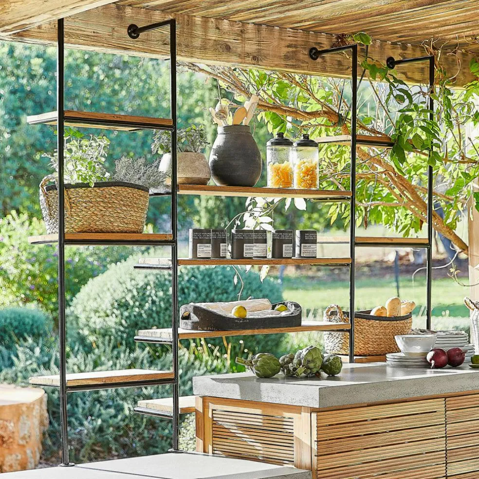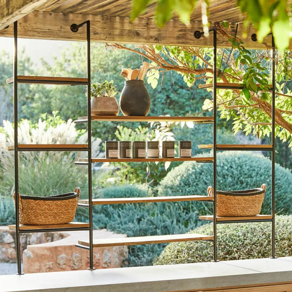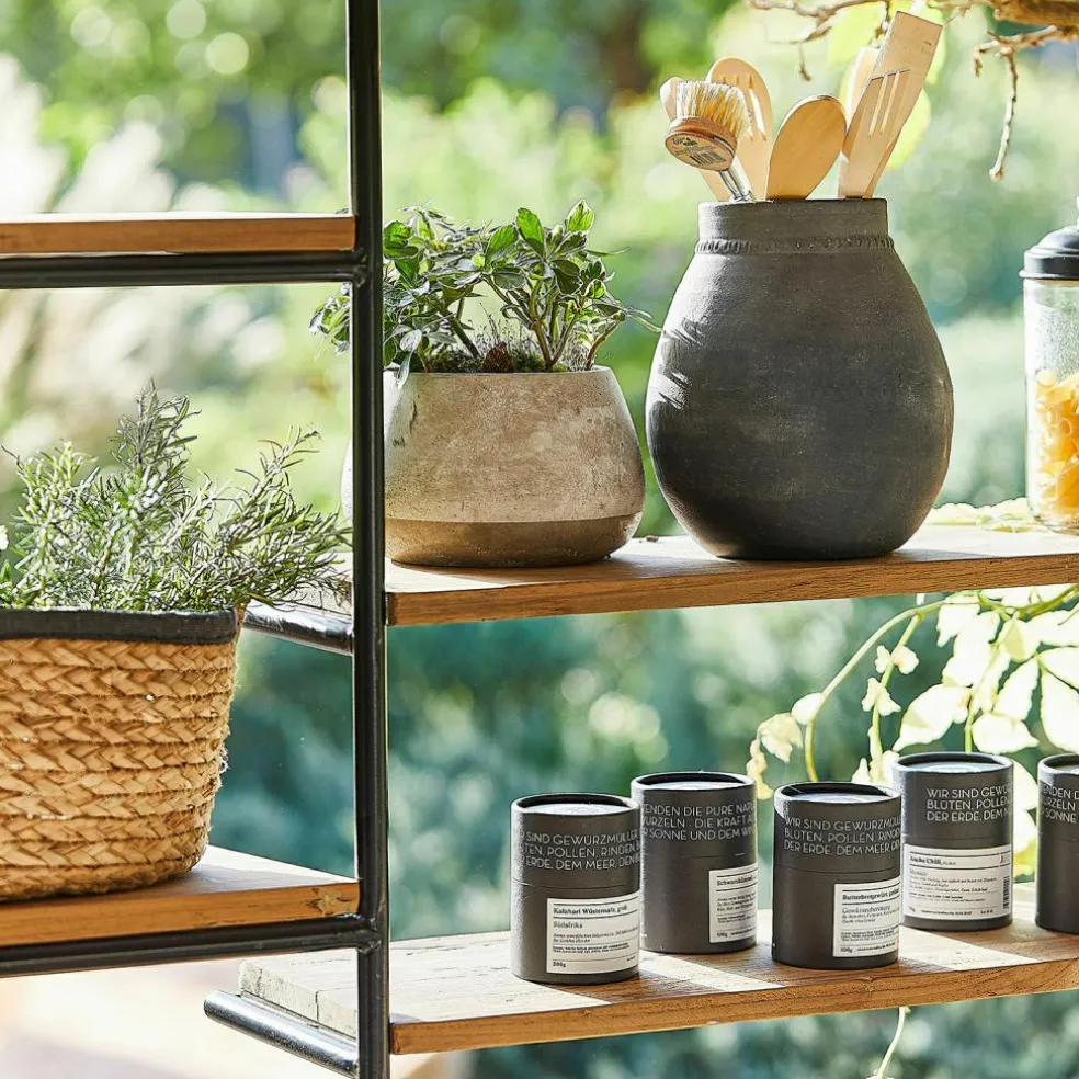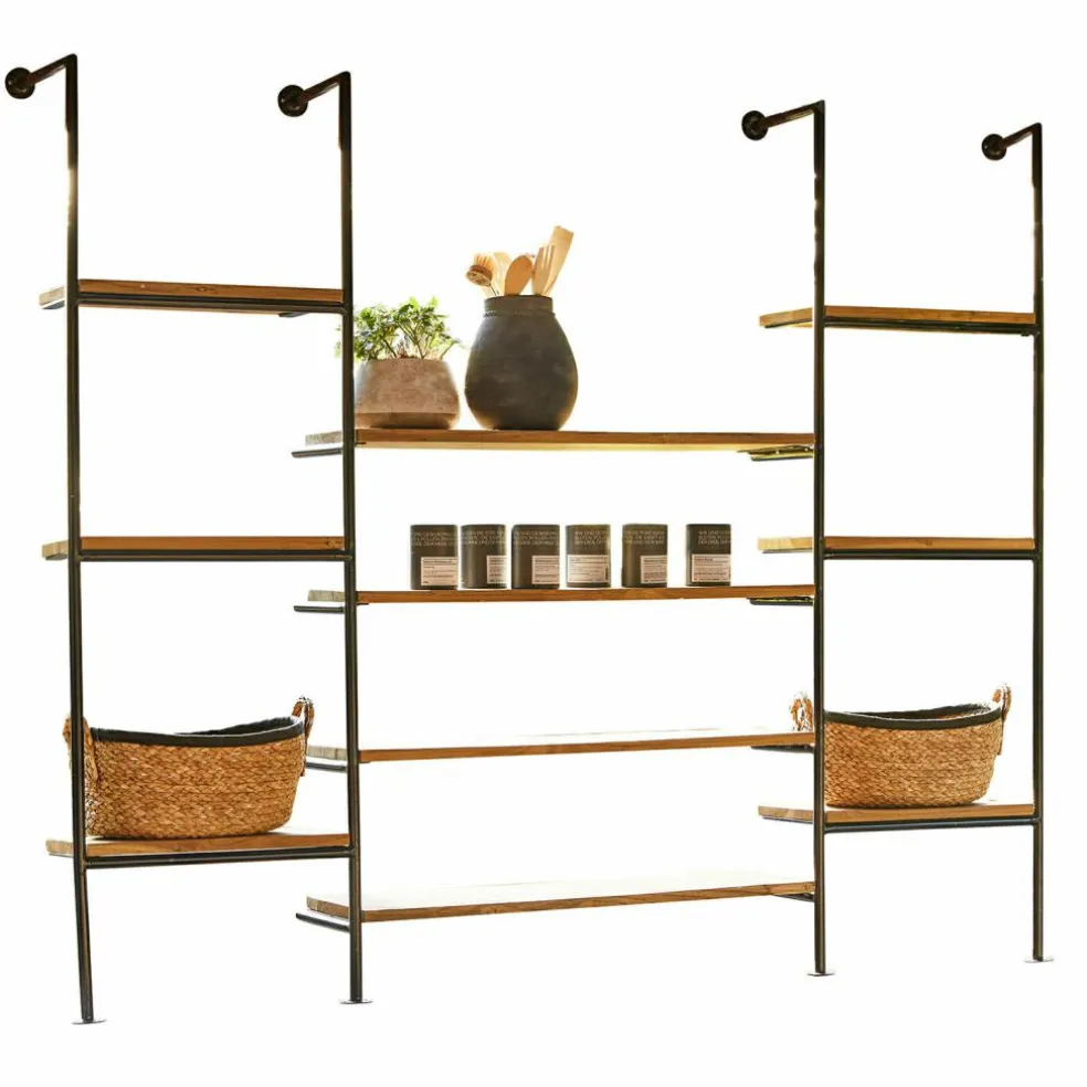 Lassen Sie sich von der Verbindung von natürlichem Teakholz und robustem, pulverbeschichtetem Eisen inspirieren. Dieses Wandregal ist eine wunderbare Kombination aus klassischer Handwerkskunst und zeitgemäßer Ästhetik. Die großzügigen Ablageflächen aus nachhaltigem Teakholz bieten reichlich Platz für Dekoration, Bücher oder Gartenaccessoires, während das Metallgestell für einen festen Stand sorgt. Ob im Wohnzimmer, auf der überdachten Terrasse oder im Garten – dieses Regal fügt sich harmonisch in jedes Ambiente ein und verleiht Ihrem Zuhause ein Stück authentische Natürlichkeit.