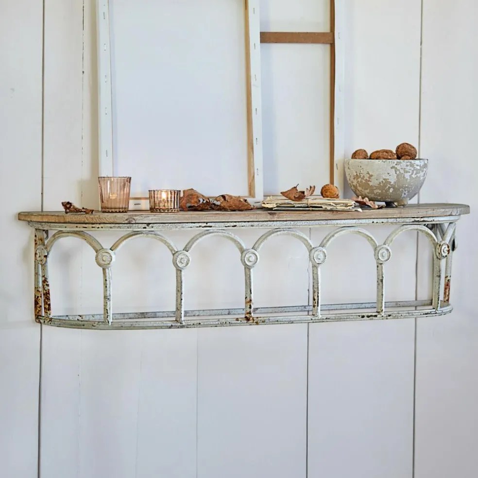 Ein Anblick, der seinesgleichen sucht: Dieses von Hand gefertigte Wandregal ist etwas für Liebhaber besonderer Wohnkultur. Das Schmuckstück wirkt, als hätte es durch historische Zeiten den Weg in Ihr Zuhause gefunden. Aus einer Epoche, in der Baukunst perfektioniert wurde. Hier verbinden sich mit Antik-Finish veredeltes Tannenholz mit langlebigem Eisen zu schönsten Formen. Praktisch, langlebig und vielseitig einsetzbar wird dieses Schmuckstück eine Zierde für Ihr schönes Zuhause sein und es um ein außergewöhnliches Highlight bereichern. Durch seine geringe Tiefe ist das Wandregal mühelos in jedem Raum unterzubringen – egal ob Flur oder im Gartenhaus.
