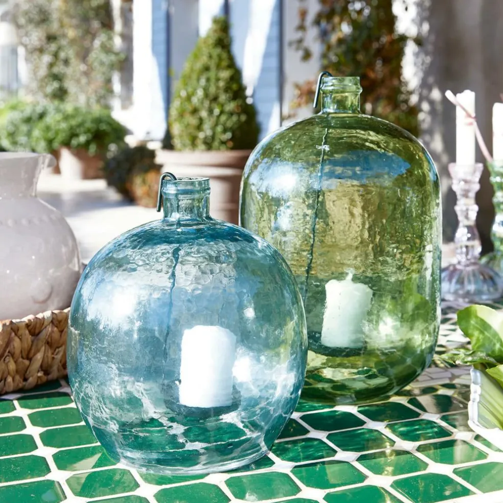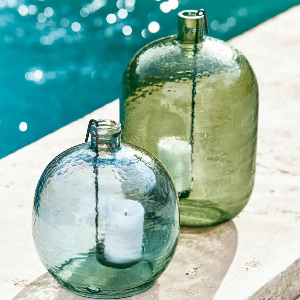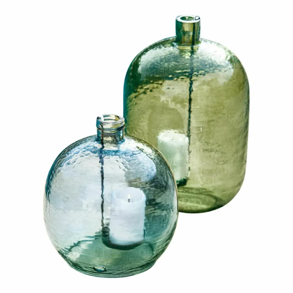 Ein harmonisches Duo mit viel Flair kommt mit diesem Set zu Ihnen. Sie erhalten zwei perfekt aufeinander abgestimmte Designs. Die beiden formschönen, bauchigen Windlichter bestehen aus verschieden getöntem Glas mit reizvoller Struktur. Die Tönung entsteht durch eine besondere Beschichtung. Daher sollten die Windlichter nicht mit Wasser gereinigt werden. Ein trockenes Tuch genügt. Innen werden Teelichter in Halterungen eingehängt, an die Sie durch den offenen Boden ganz leicht herankommen. Die seitliche, kleine Bohrung sorgt für eine bessere Sauerstoffzufuhr. Genießen Sie gemütliches Kerzenlicht in Wohnräumen, im Garten oder auf dem Balkon und freuen Sie sich in jeder Saison auf eine schöne Lichtstimmung. Dazu setzen die eleganten Windlichter einen sehr dekorativen Akzent, der vielen Interieurs schmeichelt.