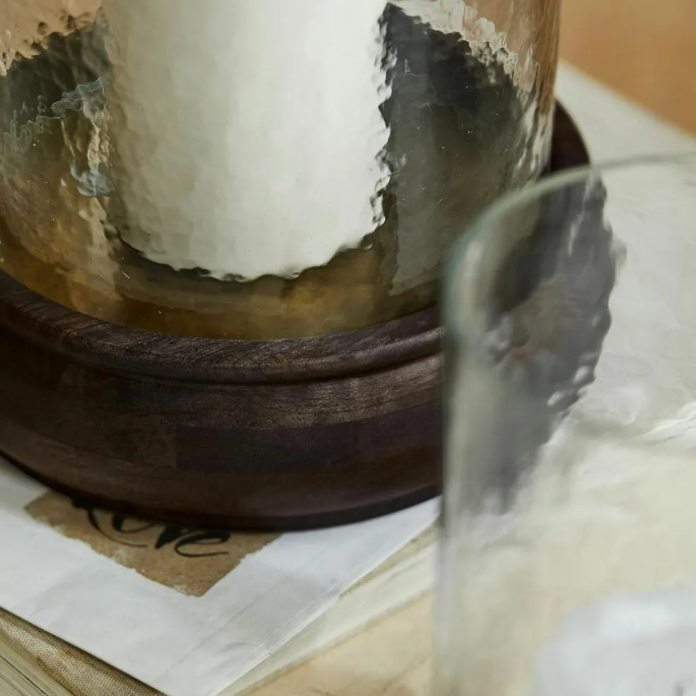 Ein Hauch von Ursprünglichkeit trifft auf feine Handwerkskunst: Dieses Windlicht-Set zelebriert die Schönheit von Materialien mit Charakter. Das Mangoholz-Podest mit seinem antikschwarzen Finish wirkt kraftvoll und geerdet, während das handgearbeitete Glas mit seiner lebhaften, leicht welligen Oberfläche das Kerzenlicht in sanften Reflexionen tanzen lässt. Gemeinsam erzählen die beiden Materialien von echter Handarbeit und zeitlosem Stil – ideal, um Ihr Zuhause in stimmungsvolles Licht zu tauchen und besondere Akzente auf Tischen oder Kommoden zu setzen. Ob einzeln oder zusammen dekoriert – jedes Stück strahlt seine ganz eigene Magie aus.