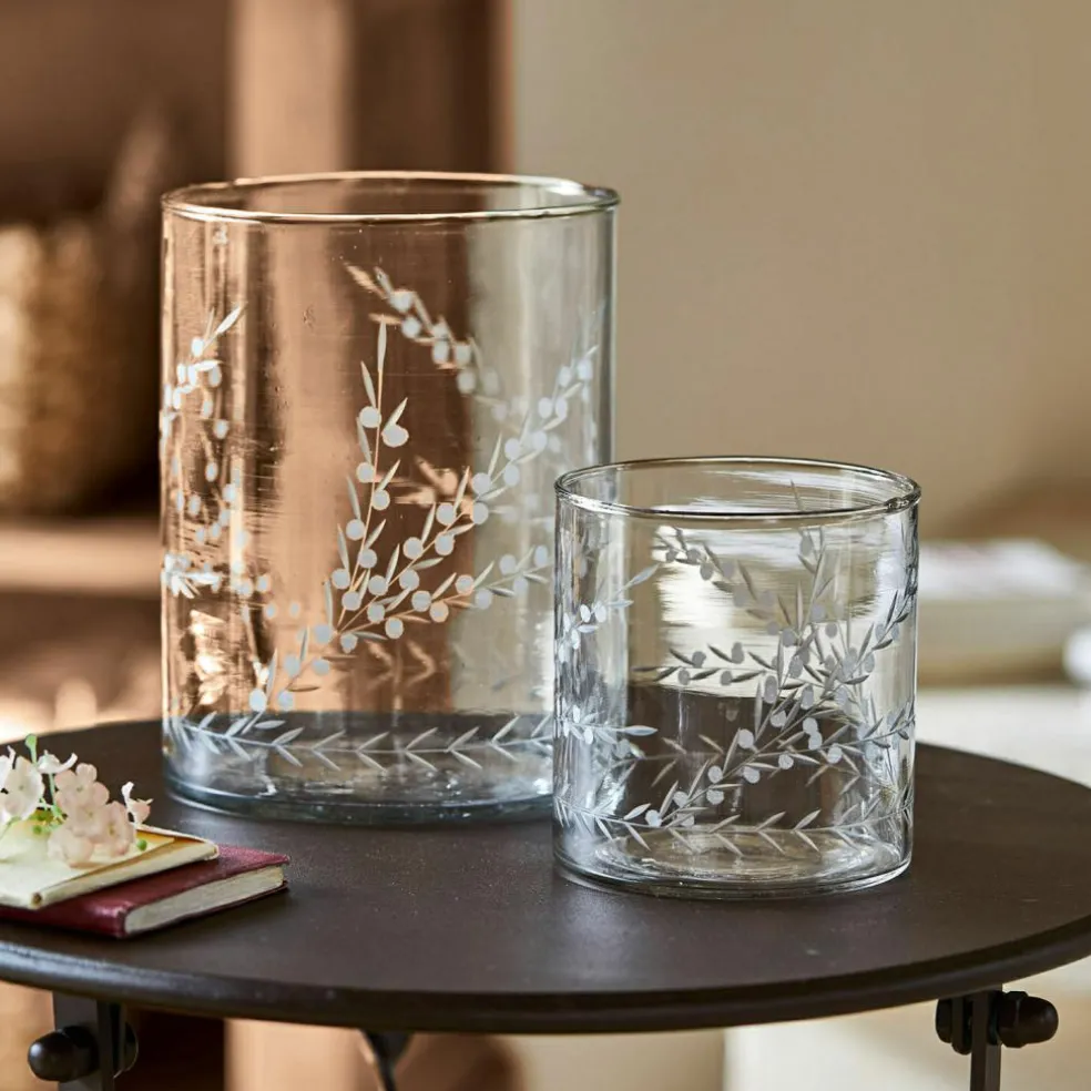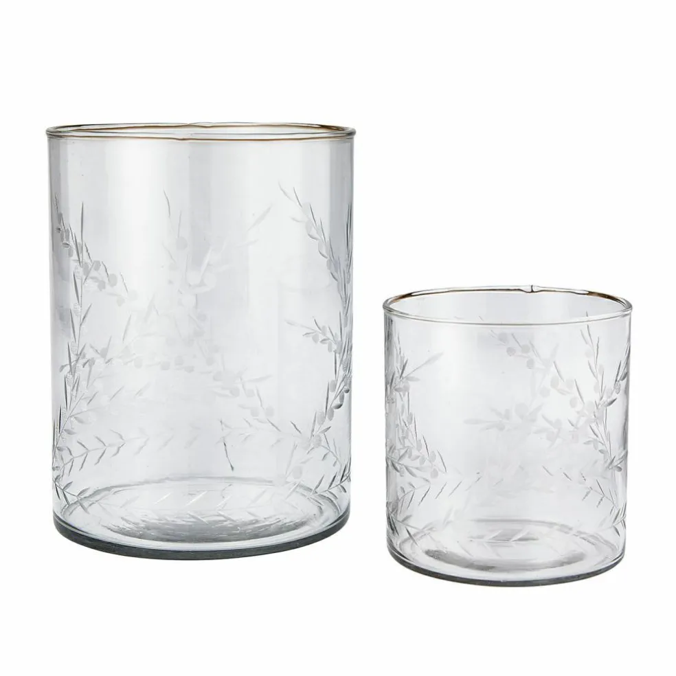Vielseitiges Accessoire und elegantes Lichtobjekt zugleich – so präsentiert sich dieses mundgeblasene Windlicht-Set aus Klarglas, das sich mit einem filigranen Schliff in Zweigen-Optik hübsch in Szene setzt. Jedes Stück ist ein Unikat, denn die Gläser fallen durch das kunstvolle Handwerk immer etwas unterschiedlich aus. Bestückt mit Teelichtern oder Stumpenkerzen können sie auf der Gästetafel oder auf dem Mauervorsprung Ihrer Terrasse wunderschöne Lichtakzente setzen. Auch als kleine Vasen oder stilvolle Behälter für Badutensilien sind sie perfekt einsetzbar. Das dezente Design harmoniert mit jedem Wohnstil und jedem Tischgeschirr.